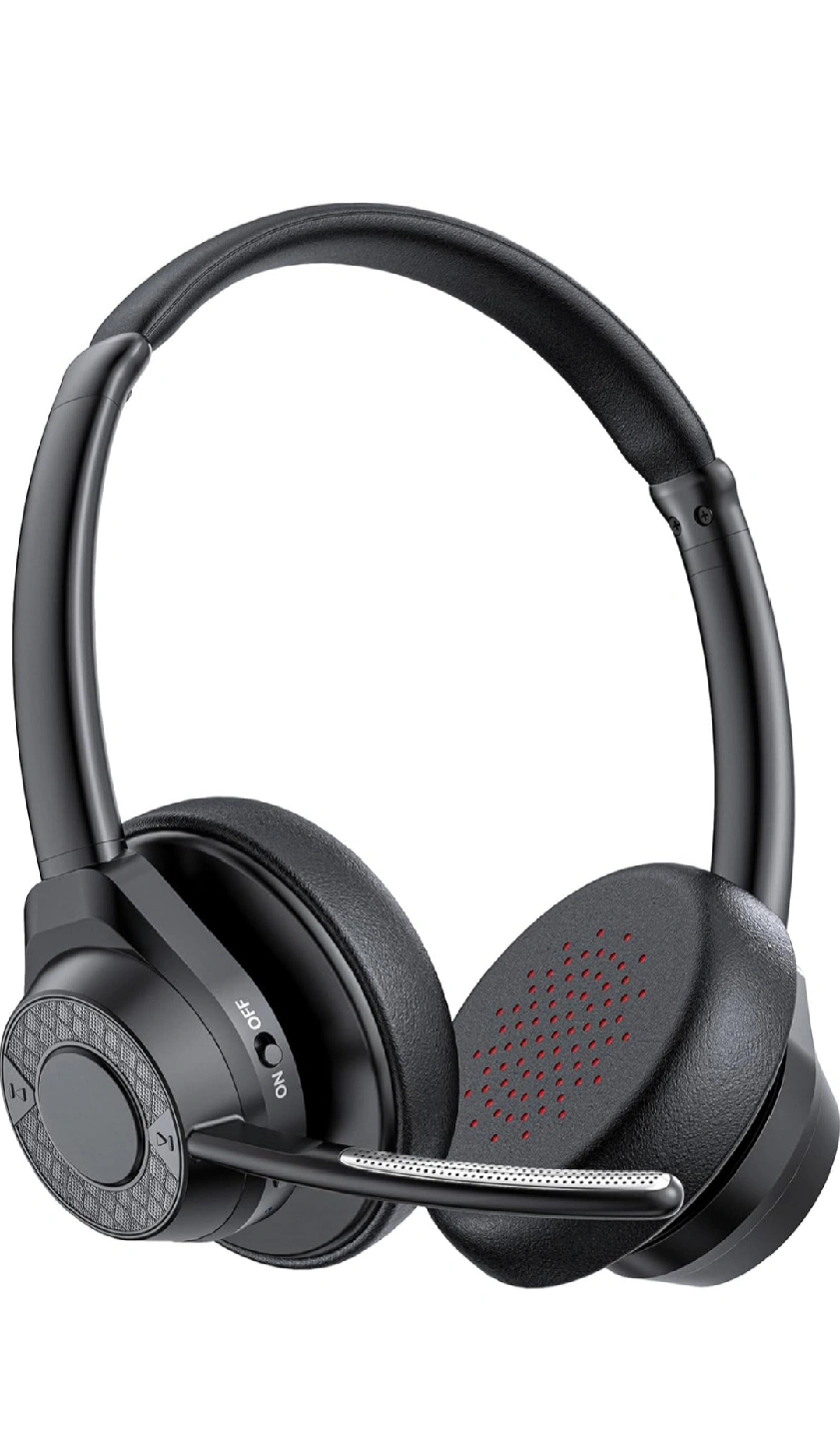Bluetooth Headset, Wireless Bluetooth V5.4 Headphones with Microphone, Noise Canceling Multipoint Connect Wireless Headset with Mic for Work/Mobile/Laptop/Call Center/Noisy Office/Zoom - Black.