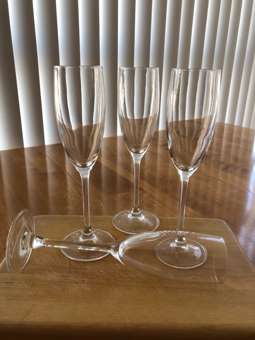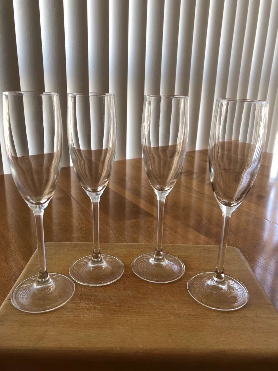 Selling a set of four champagne flutes. They're perfect for celebrations or adding a touch of elegance to any occasion. These glasses are in great shape and ready to sparkle!