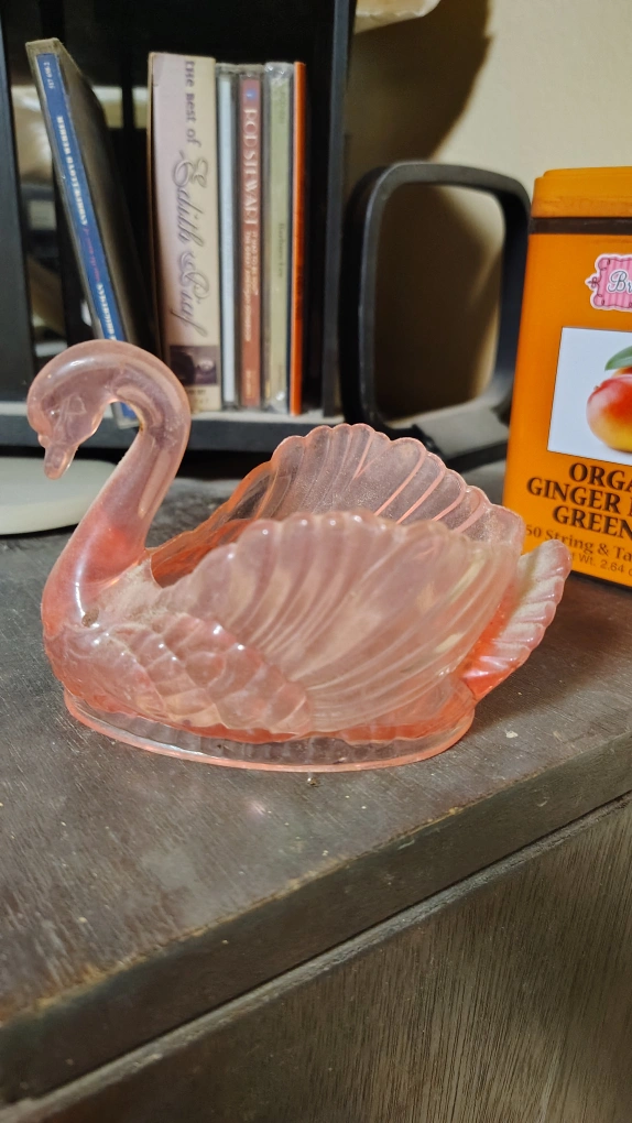 Selling a vintage pink swan trinket dish. It's a beautiful piece to add to your collection or use for storing small items. Perfect for adding a touch of vintage charm to any space!