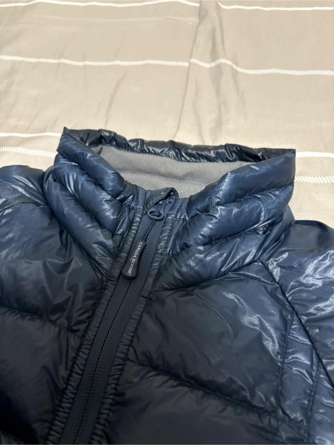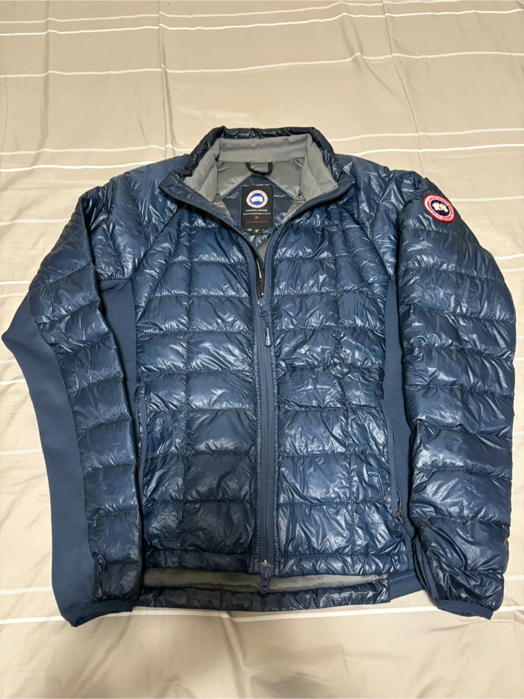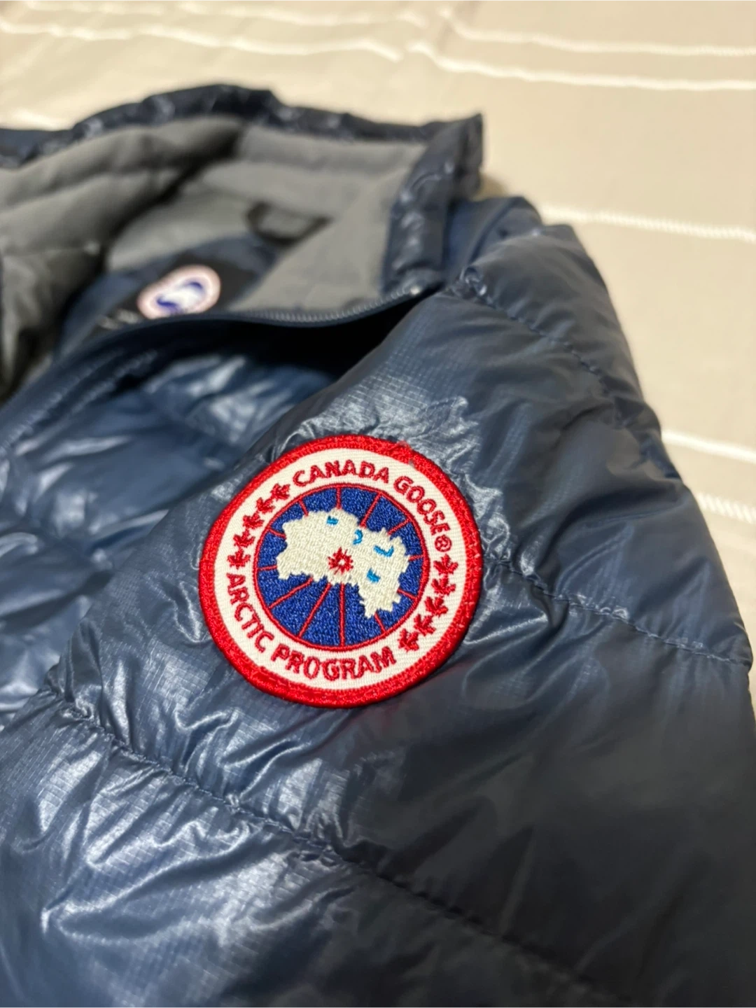 Selling a Canada Goose jacket in Men’s size S, but fits Women’s Medium. It's in good condition, perfect for staying warm during the colder months. There's a small hole on one sleeve.