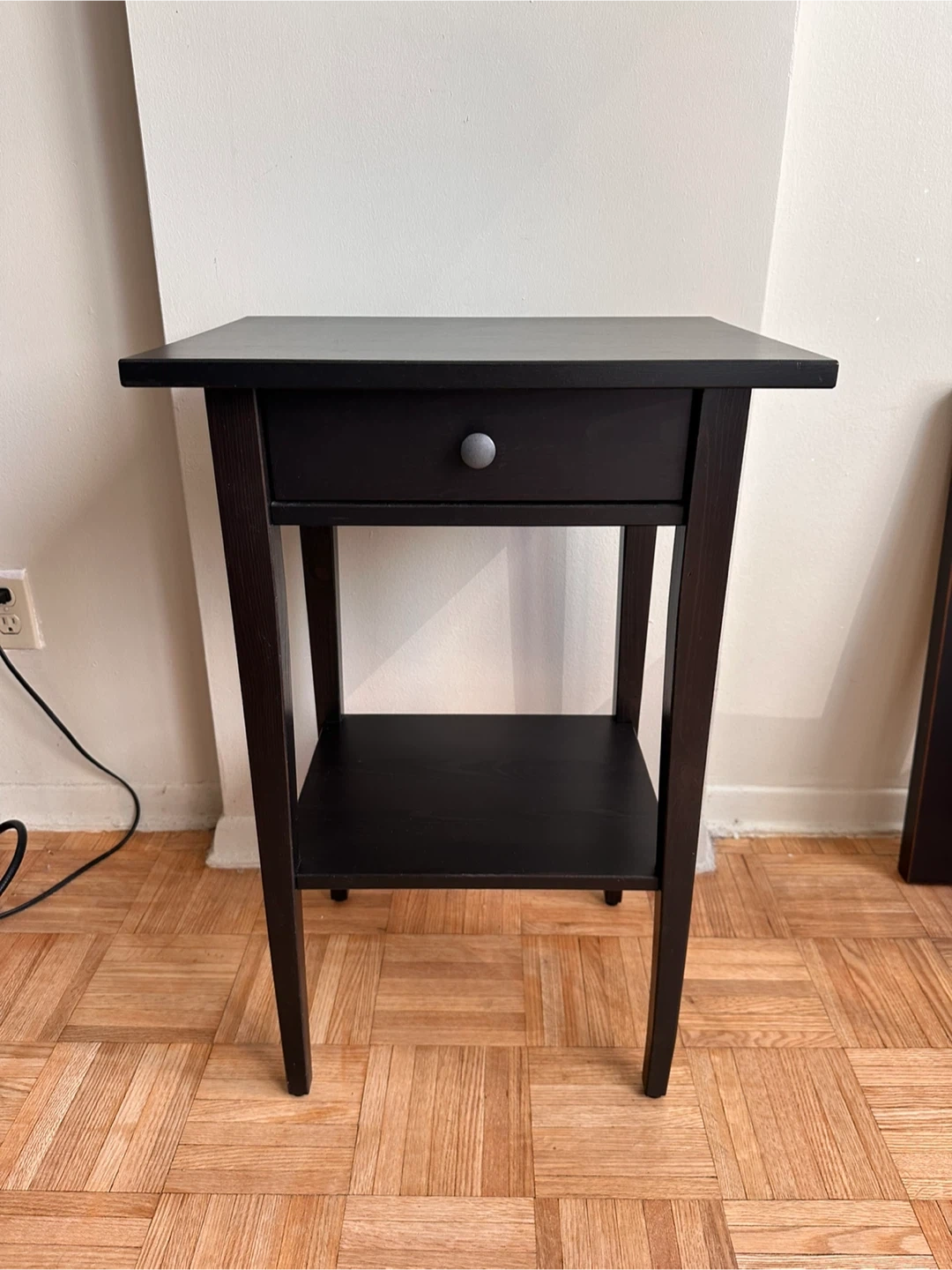 Selling a gently used IKEA Hemnes nightstand in black.