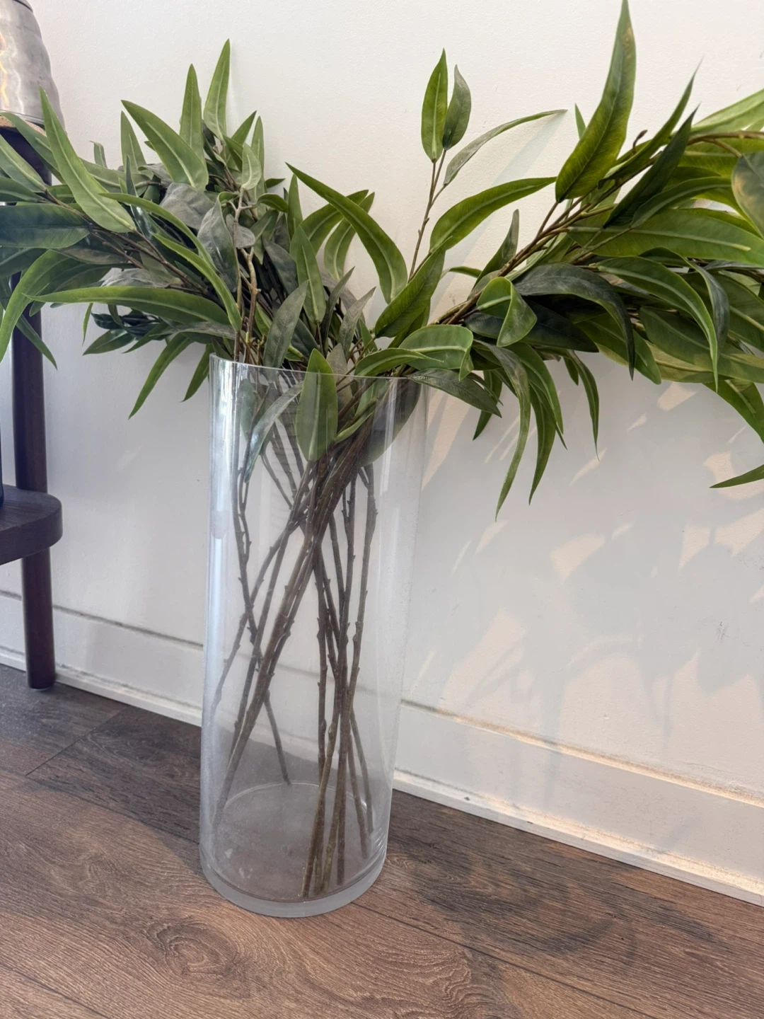 Tall Glass Vase with Faux Greenery