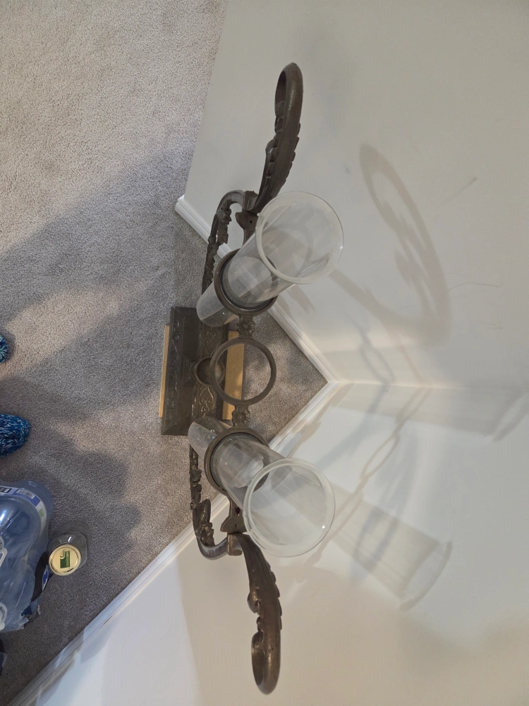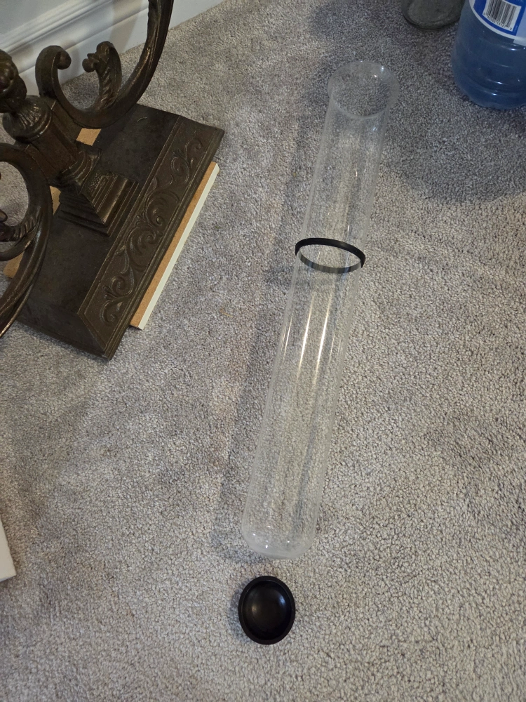 Has 2 of 3 original glass vases...rare to have any, plus the original rubber ring and base protectors.