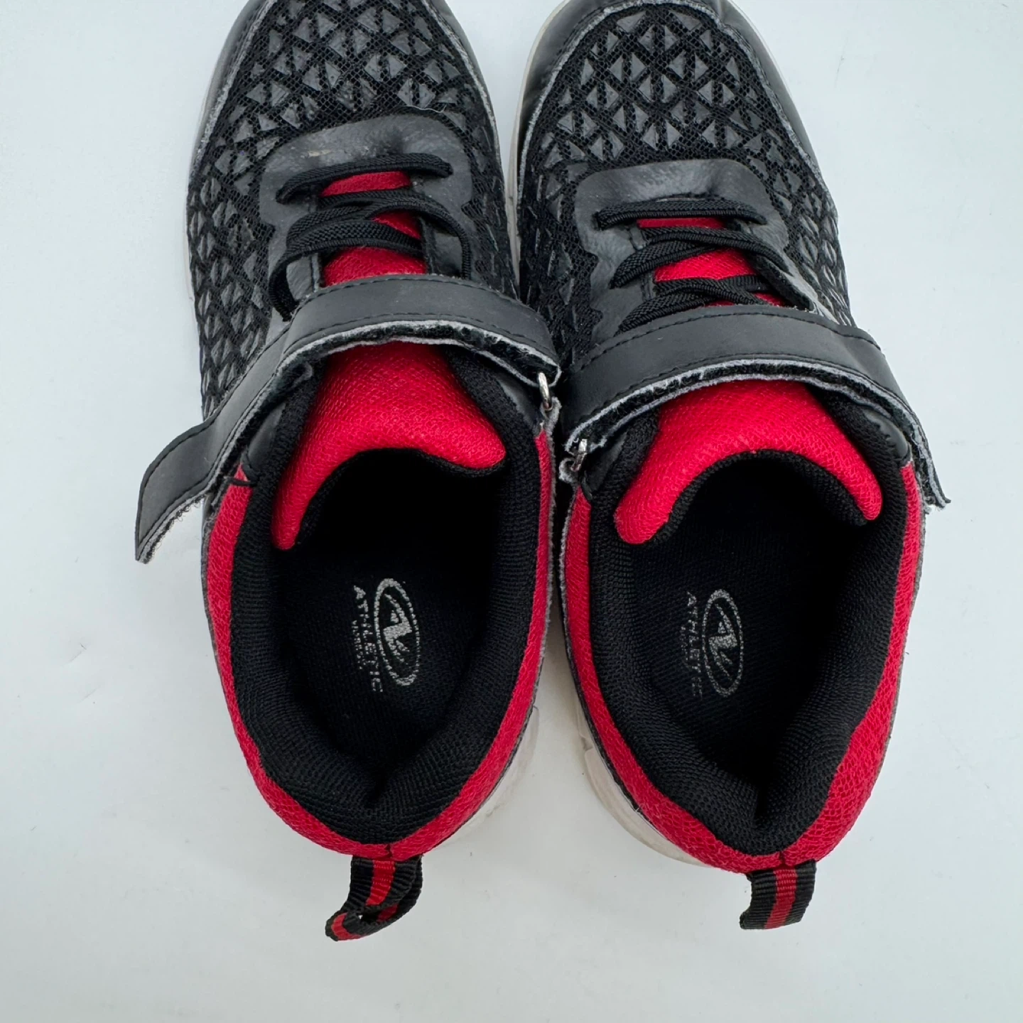 93Comfortable and lightweight kids' sneakers by Athletic Works. • Size: 2 (Youth) • Color: Black with red accents • Condition: Gently used, still in good wearable shape (see photos) • Closure: Velcro strap + laces design • Without box Perfect for everyday wear, school, or outdoor play. 📍 Pickup in North york Delivery available for extra (S11)1315