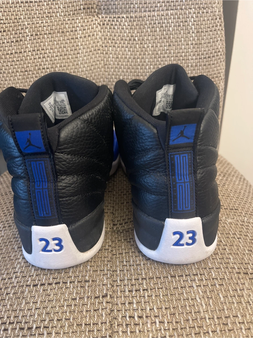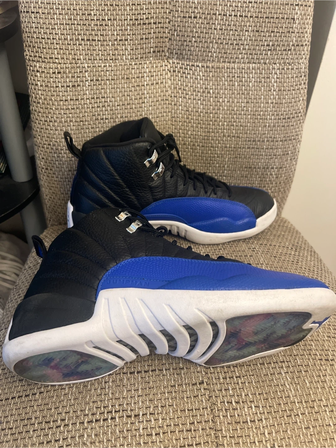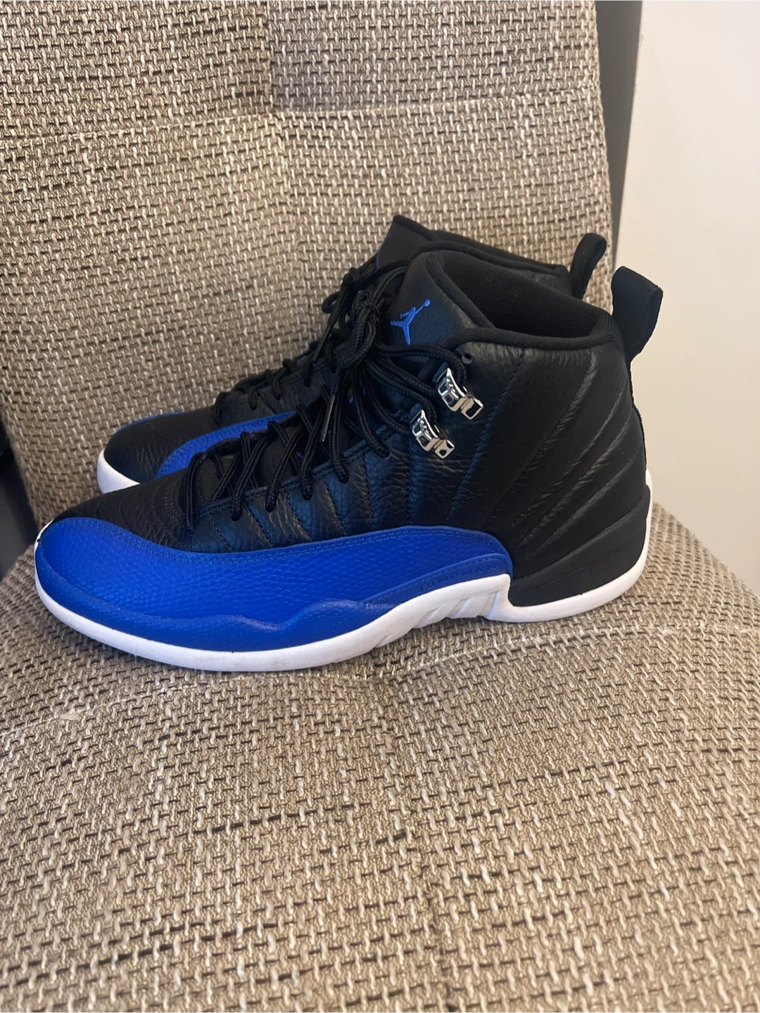 Selling a pair of Air Jordan 12 Retro sneakers in black and royal blue. These shoes are in great condition and feature the classic design with the number 23 on the heel. Woman’s size 11 (Men’s size 9.5)