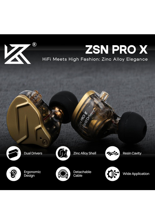KZ ZSN PRO X Earphones - HiFi Zinc Alloy Elegance