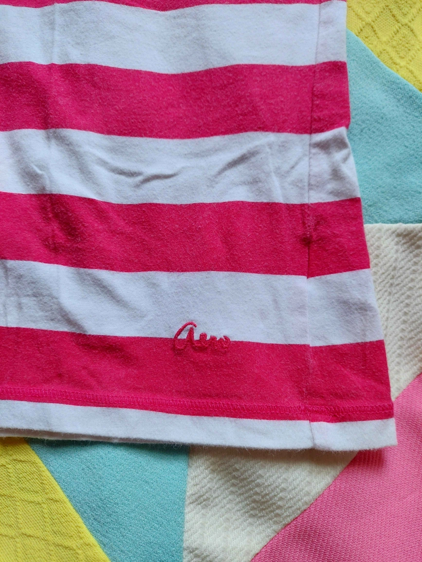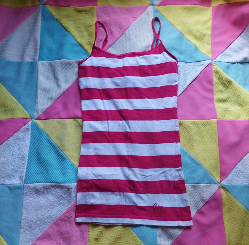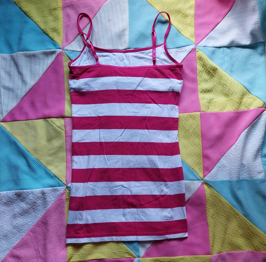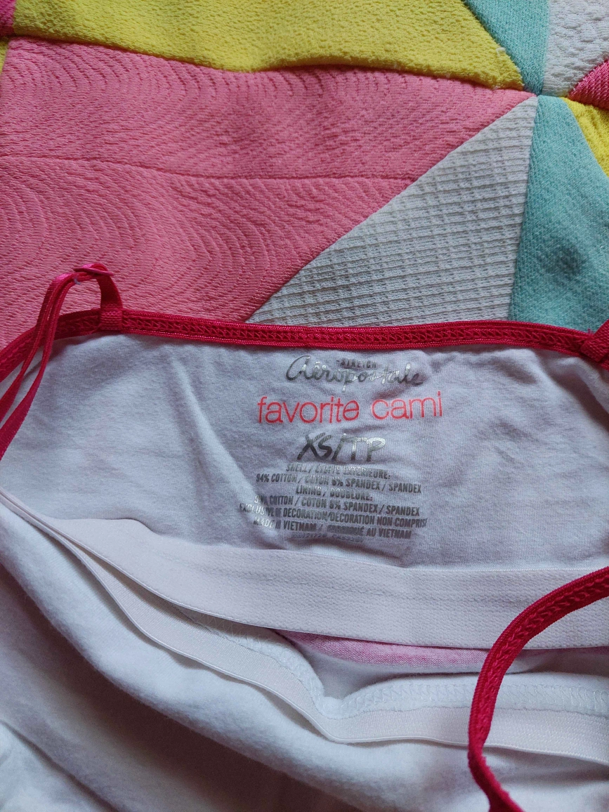 75adorable white and pink striped cami by Aeropostale. has the logo embroidered near the bottom of the shirt label size XS, pit to pit laying flat is 11.5in, length from the top of the strap (which is adjustable, so give or a take a few inches) to bottom is 22in item is in like new condition with no flaws or signs of wear