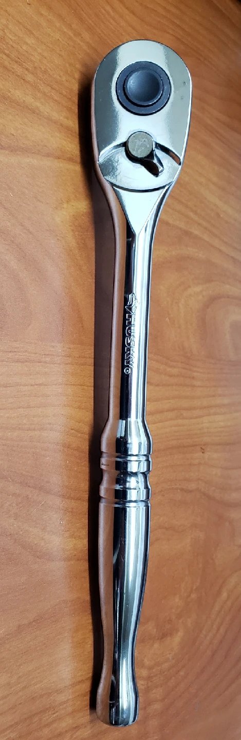 Like new condition. Husky 3/8-inch Full-Polish Ratchet. Lifetime Warranty with no questions, no receipt required at Home Depot. Made of alloy steel to provide excellent durability. The finish provides resistance to corrosion. This ratchet has a 3/8-inch drive and a teardrop-style head with a low profile to allow for excellent access to nuts and bolts in tight locations. Specifications Head Type: Standard Ratchet Type: Zero Degree Overall Length (In.).: 10.43 Measurement Standard: SAE Features Low-Profile head design Quick Release button allows sockets and drive tools to be easily removed from the ratchet Flush mounted reversing lever 72-tooth ratchet needs a only 5° arc swing to turn fasteners Works with Husky 3/8-inch drive sockets Cold formed and heat treated for outstanding strength Meets or exceeds ANSI Standards