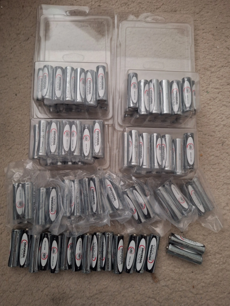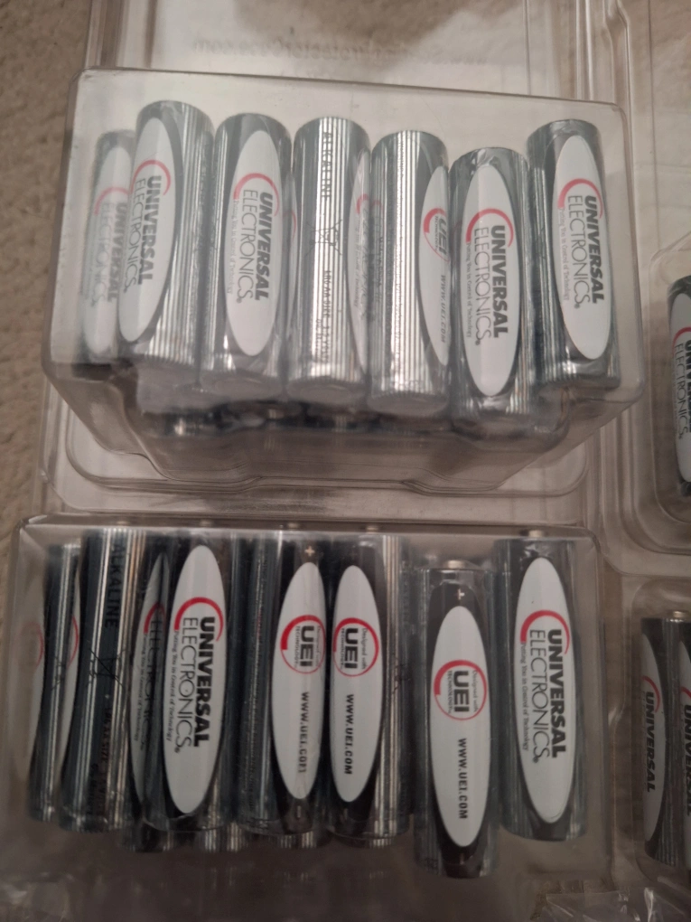 A bunch of Universal Electronics AA Alkaline Batteries for sale! They're ready to power your devices. Perfect for remote controls, toys and more! 1.5 volts ⚡️