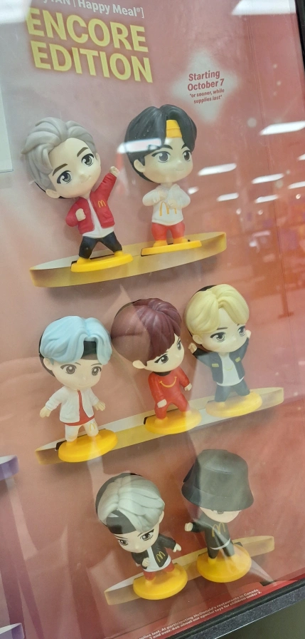 Great for ARMY and McDonald's Happy Meal toys enthusiasts alike! Don't miss out on this edition with limited availability in McDonald's restaurants. No need to make multiple meal purchases and suffer the disappointment of duplicates. Get this full set all at once right now! 💜