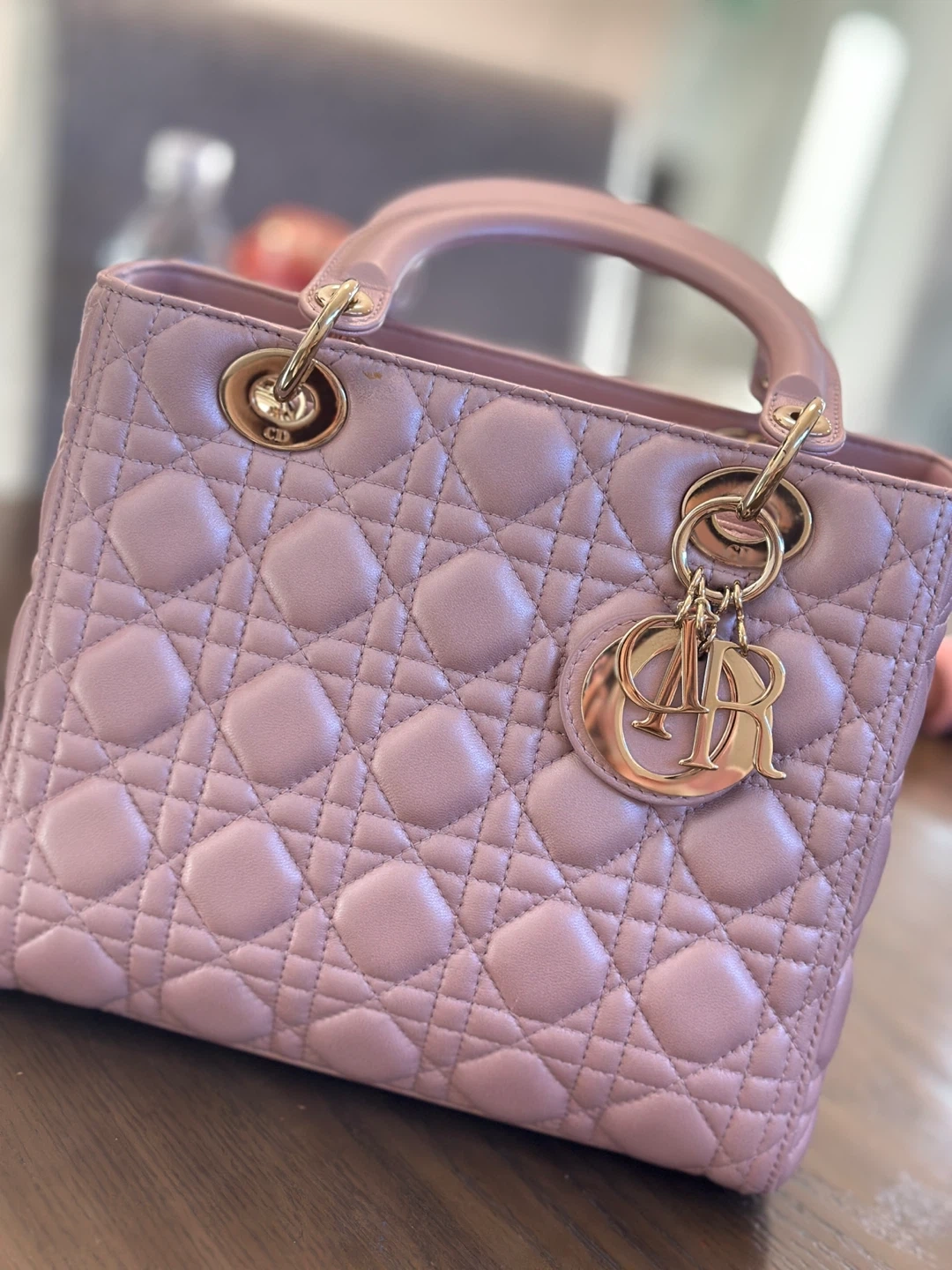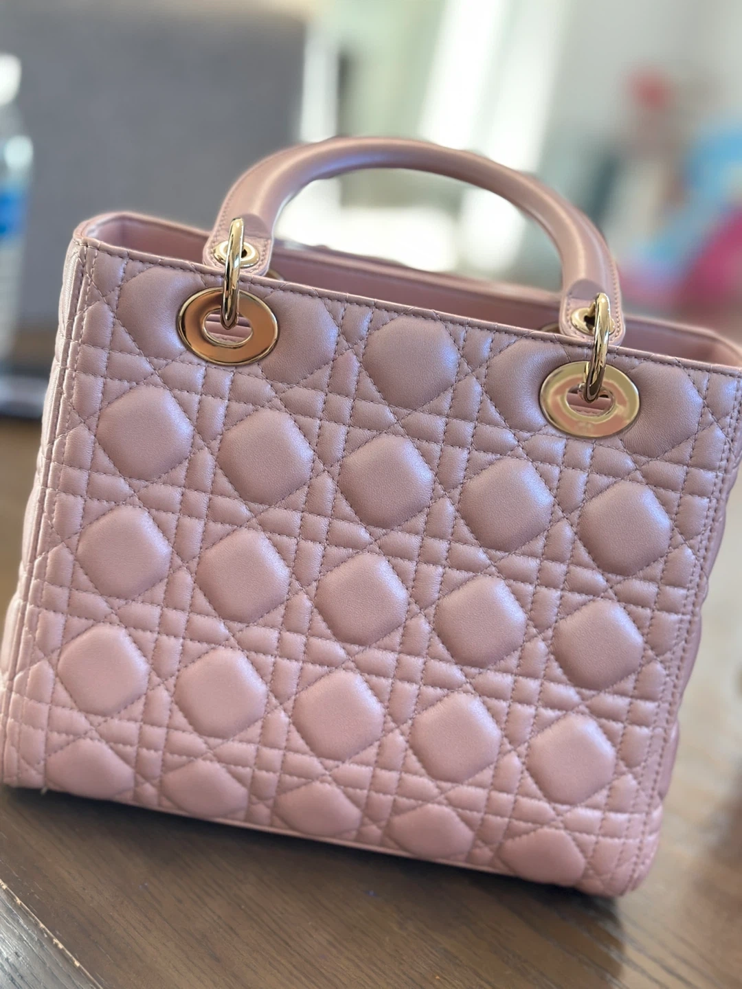 Selling a beautiful Lady Dior bag in a pale pink colour. It's in great condition and has the classic Dior cannage stitching. A timeless and elegant piece!