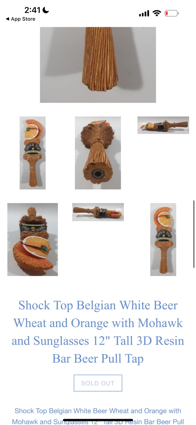 Selling a Shock Top Belgian White beer tap handle. It features a wheat and orange design with sunglasses. It's 12" tall and made of 3D resin. Great for a home bar!