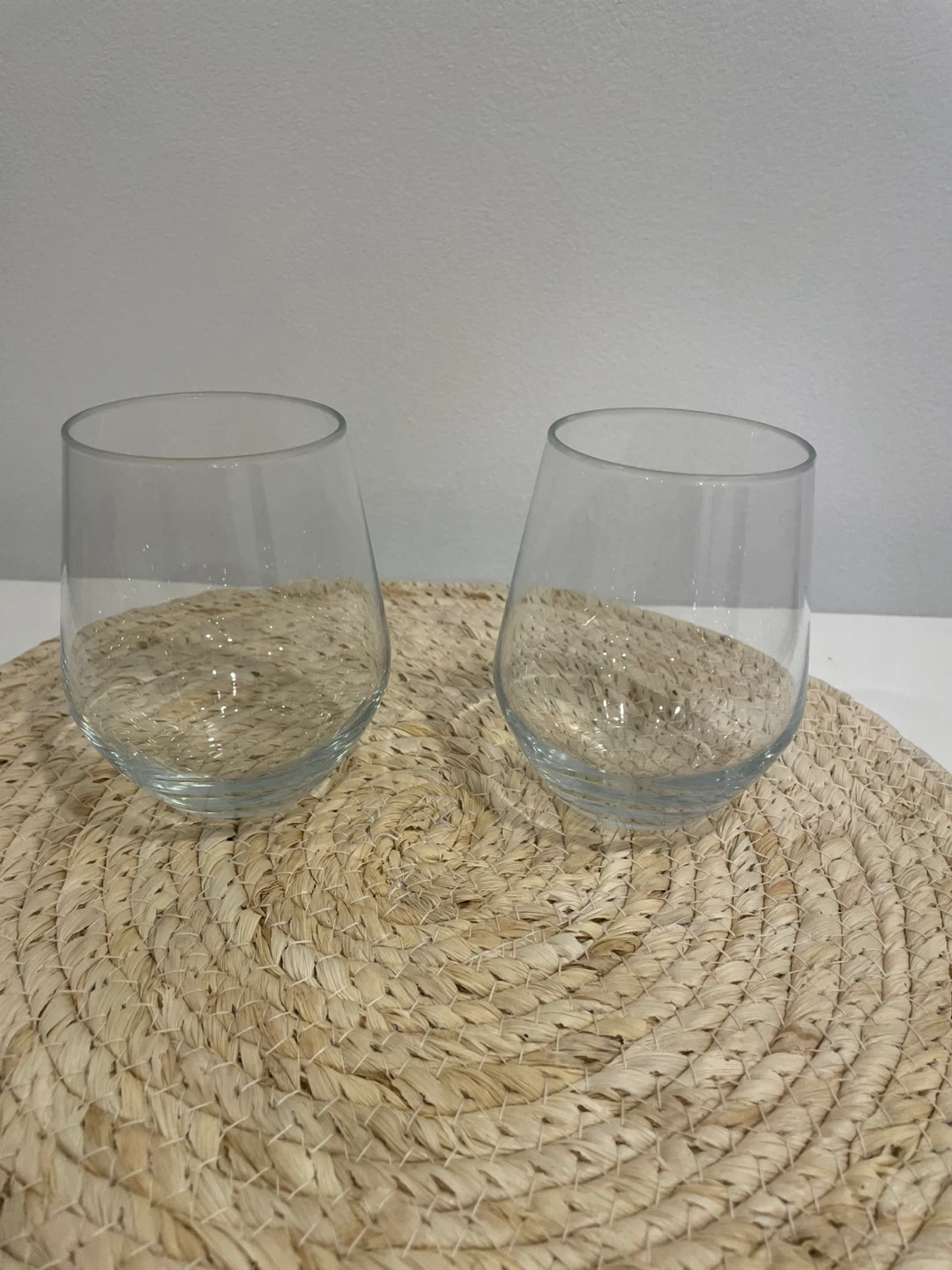 Selling a set of stemless glasses! They're in great condition and perfect for everyday use or special occasions. These glasses are clear and have a simple, elegant design that fits any table setting