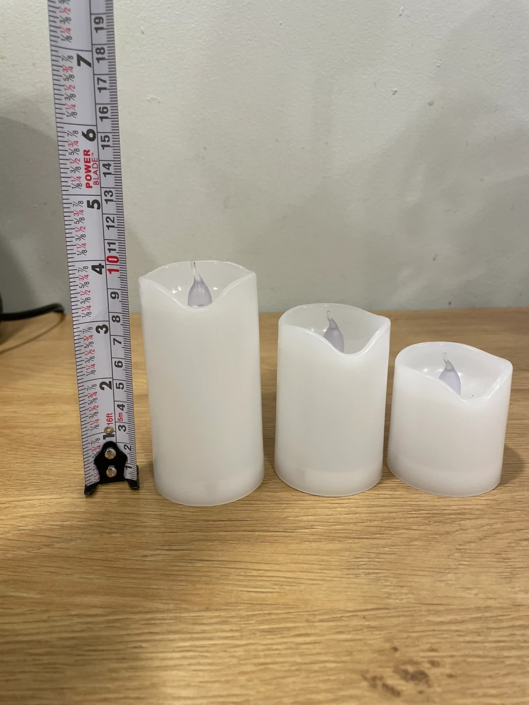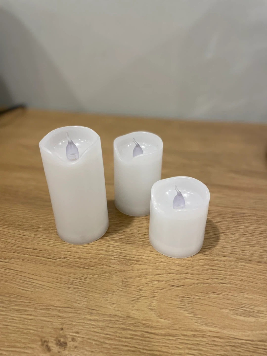 Selling a set of three flameless LED candles! They come in varying sizes, as you can see in the photos. Perfect for adding a cozy touch to any room without the worry of a real flame