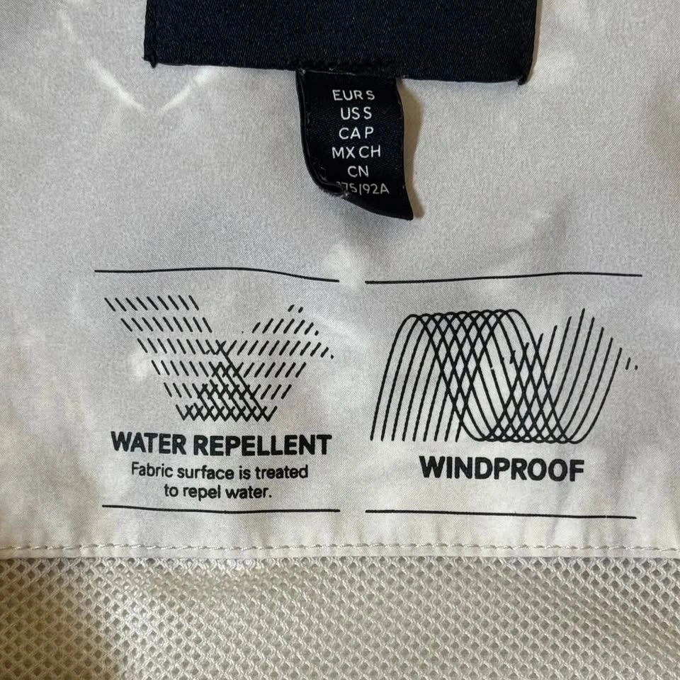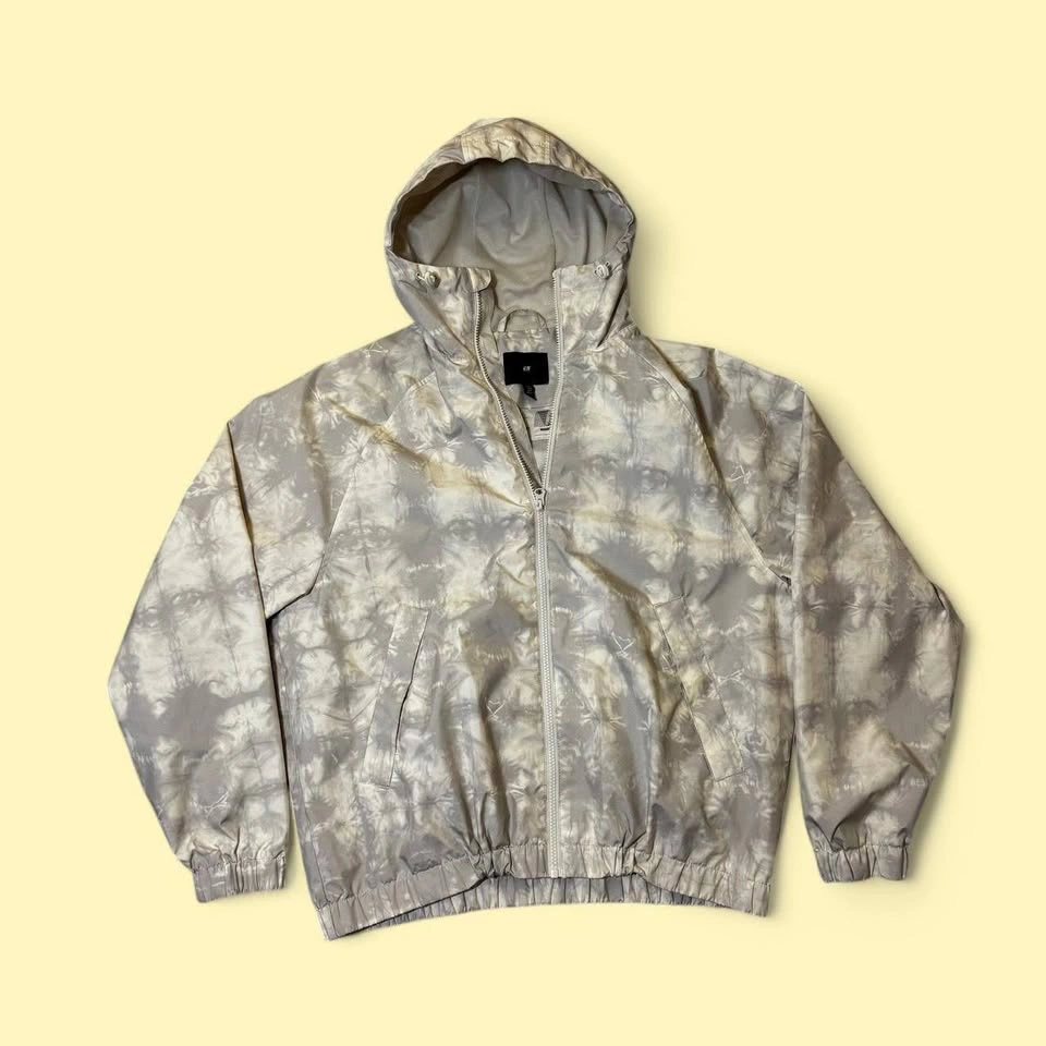 65H&M lightweight hooded windbreaker with a unique tie-dye pattern. Water-repellent and windproof, perfect for unpredictable weather. Size Small.