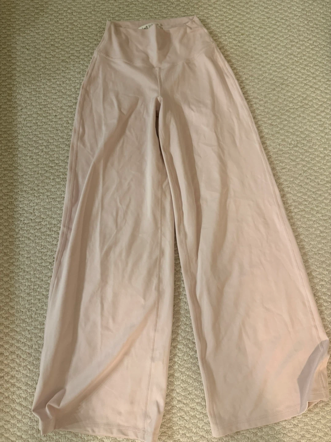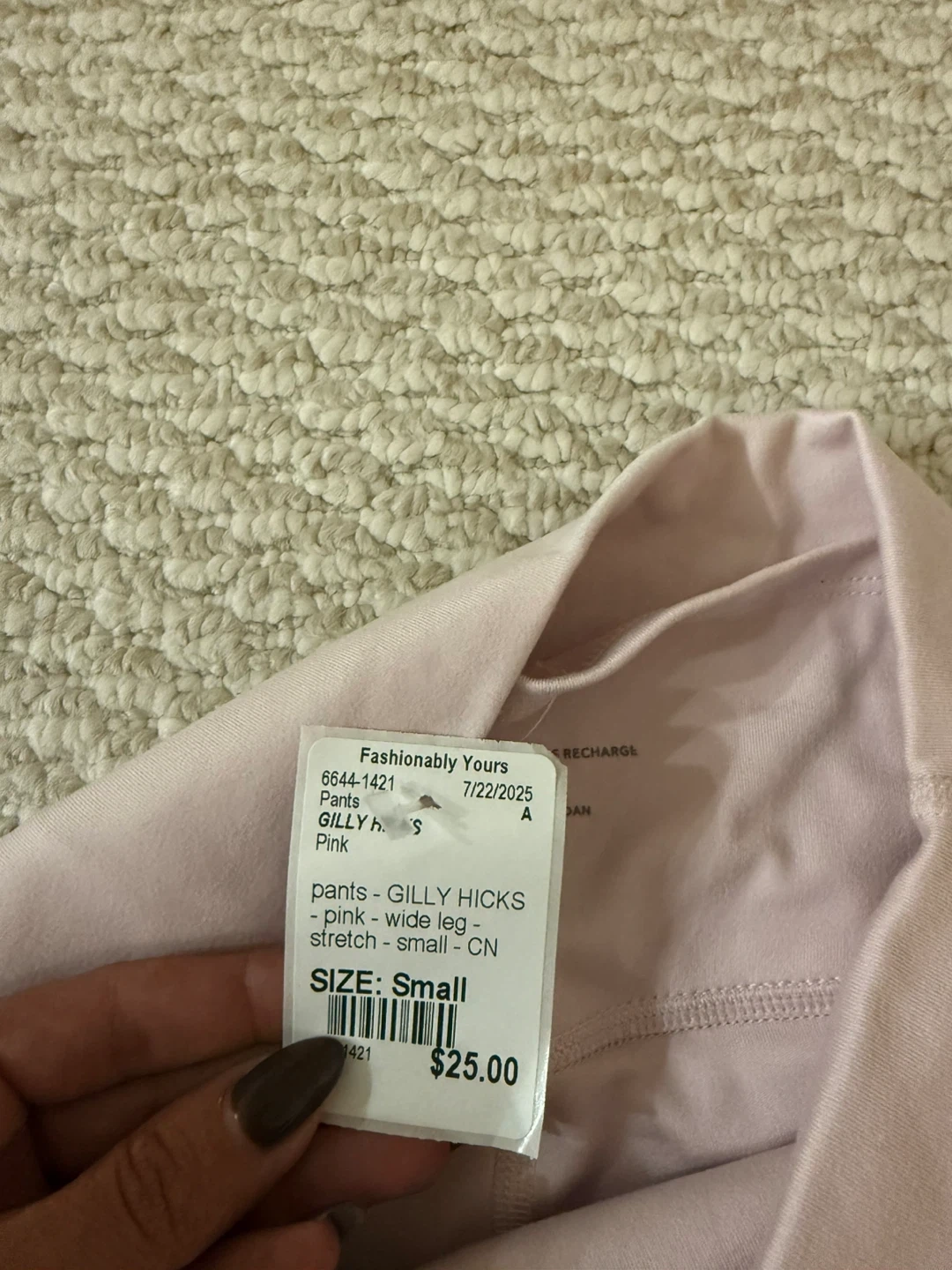 Gilly Hicks Recharge wide leg pants in a size small. These pants are pink and made in Jordan. They are stretchy and would be great for yoga or lounging! New with tags