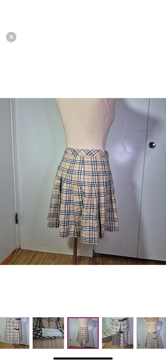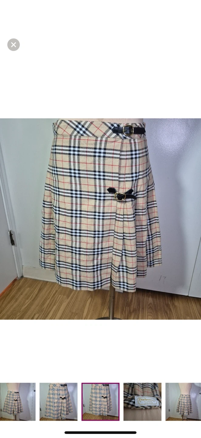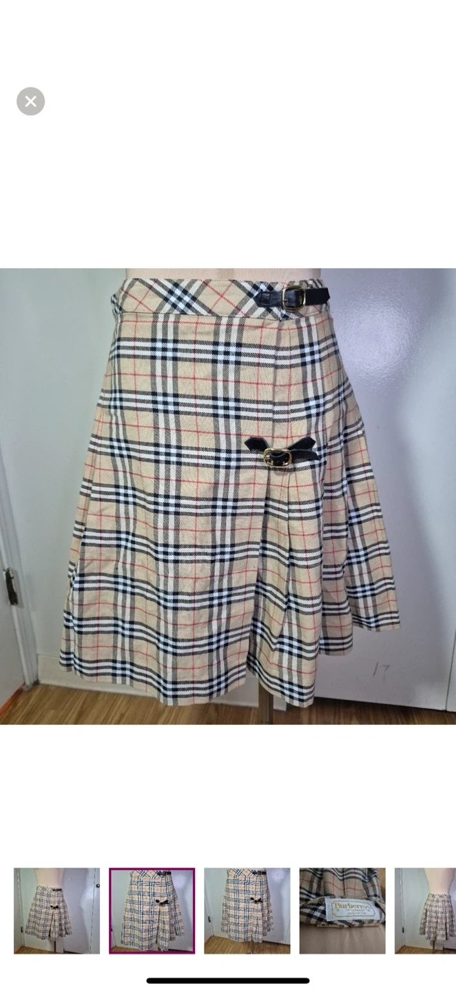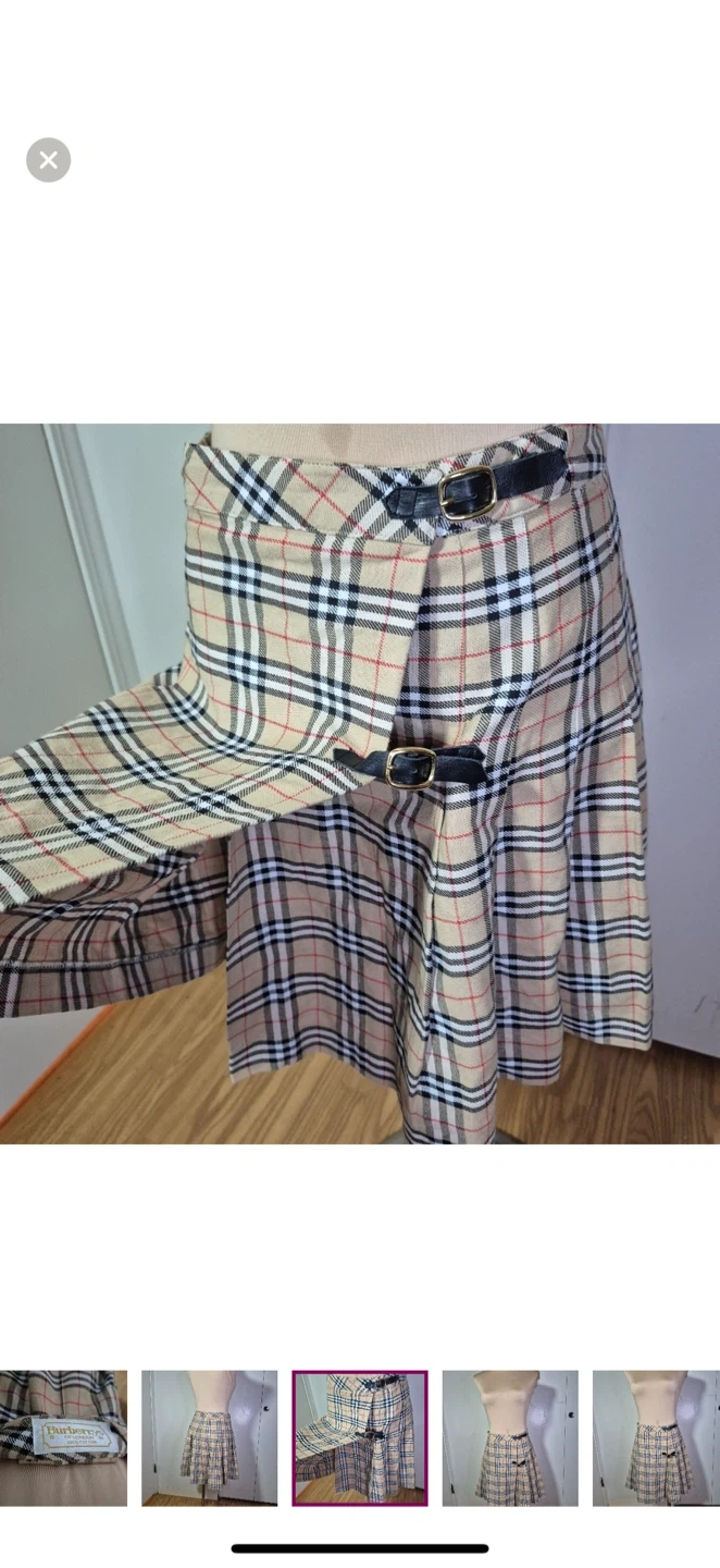 Here's a classic Burberry skirt with a plaid pattern! It features pleated details and buckle accents, adding a touch of sophistication to your wardrobe. Perfect for any occasion!