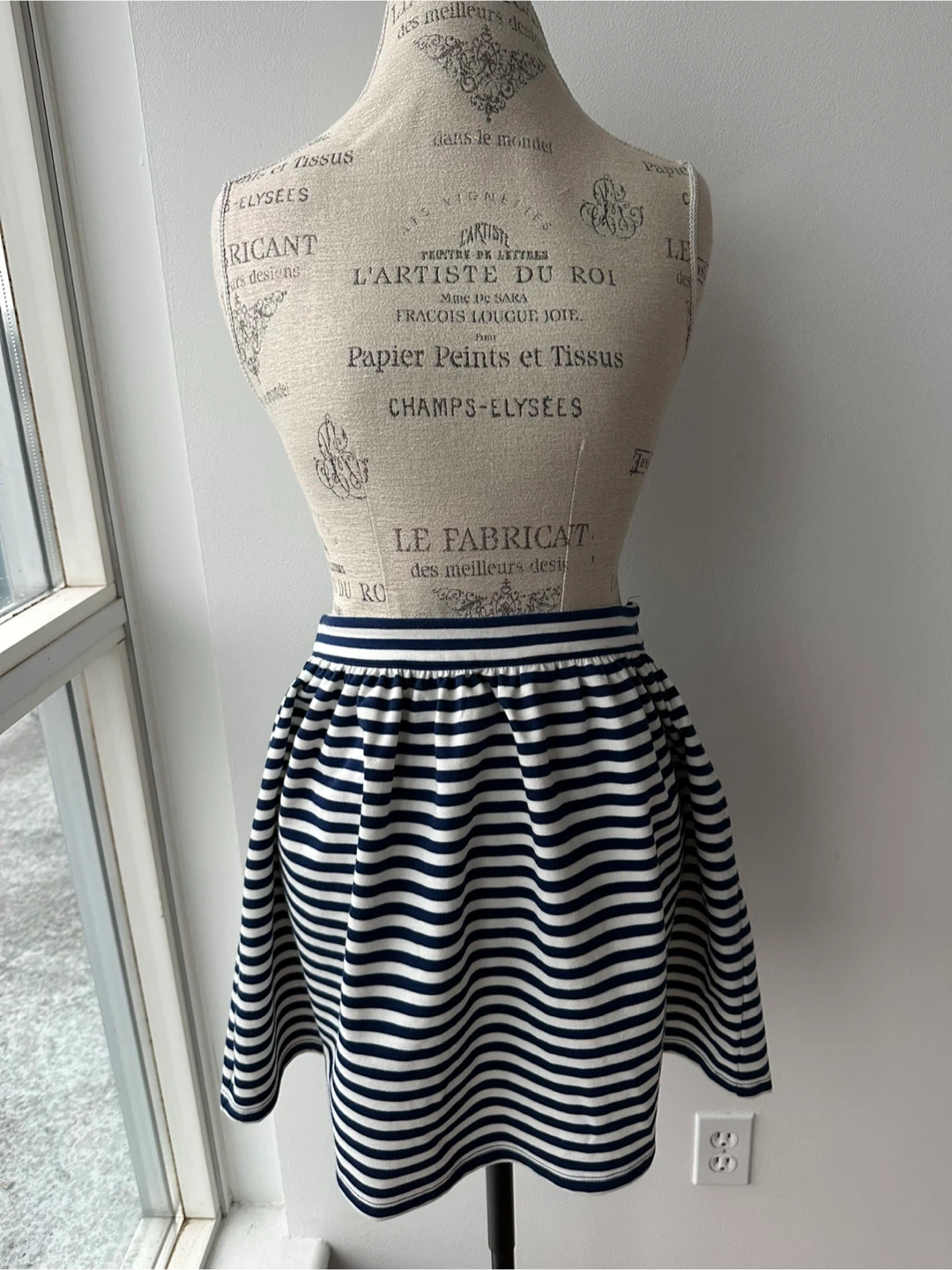 This Forever 21 cute striped mini skirt in navy and white is the perfect Brunch skirt. It's in great condition and would be a lovely addition to your wardrobe. The skirt features a flare style and has a side zip.
