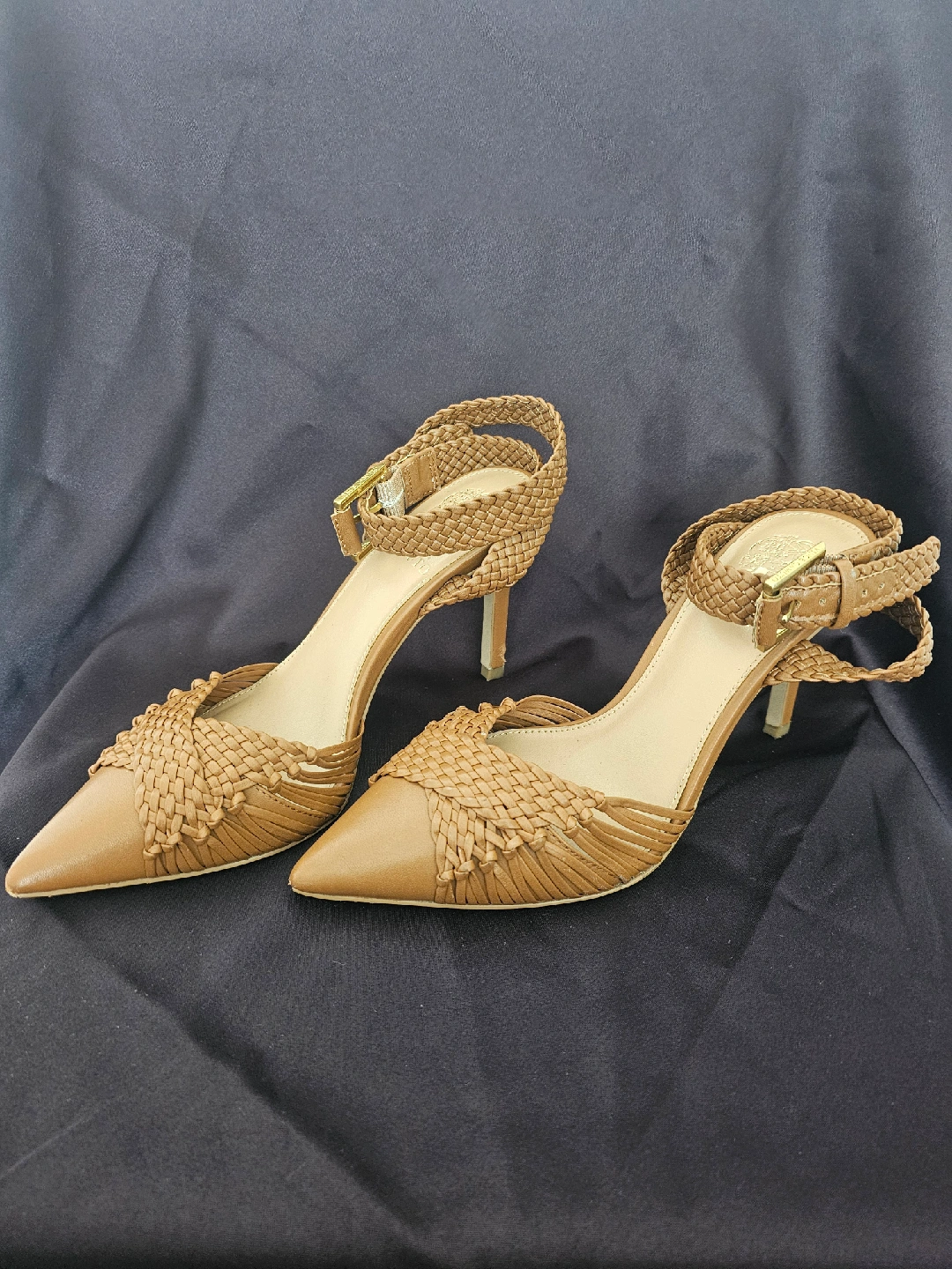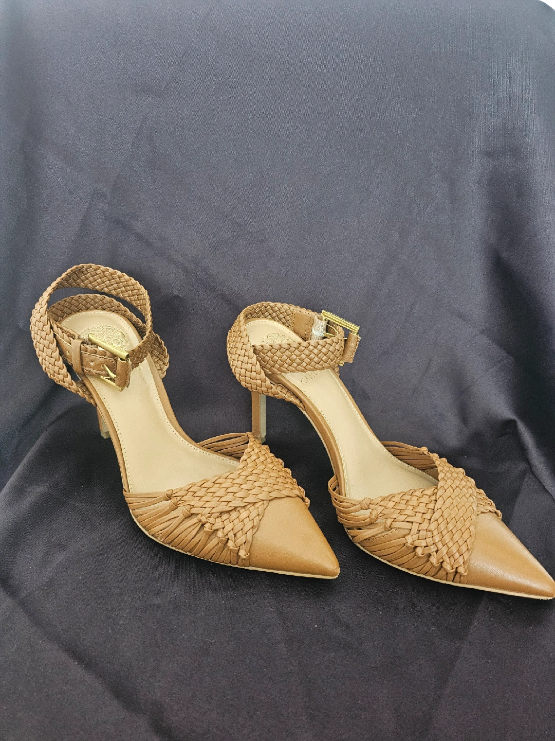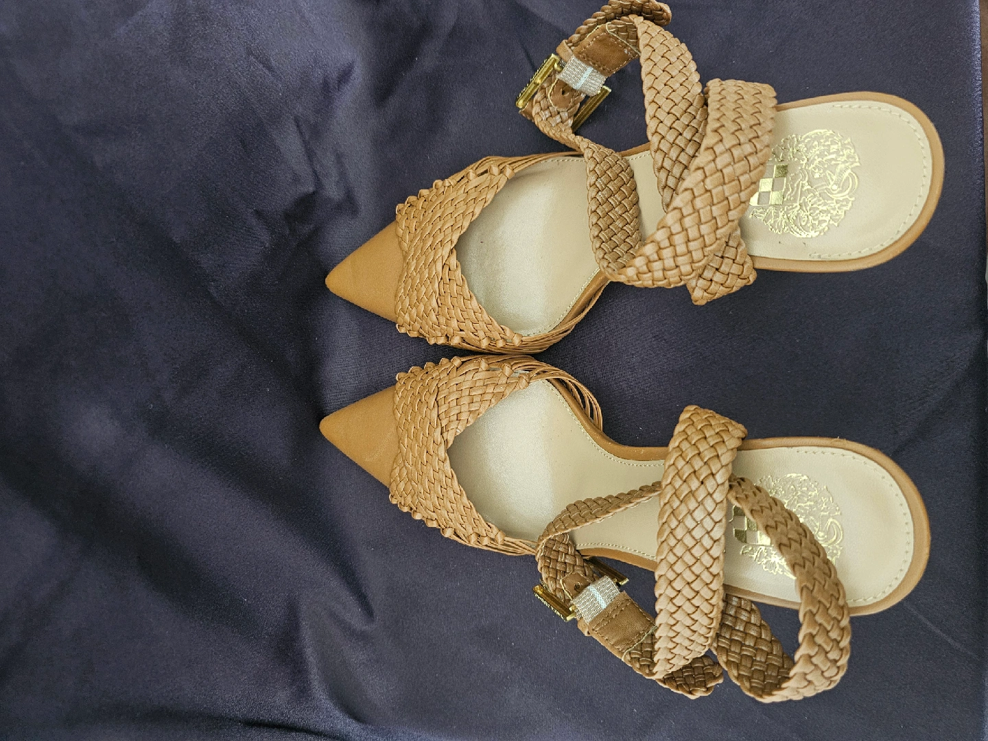 10These are a pair of Vince Camuto heels in a woven style. They have an adjustable ankle strap and are very comfortable. lightly used, good condition. Size 5 $50 Open to offers Pick up only Cash only near WESTON GO/UP train station
