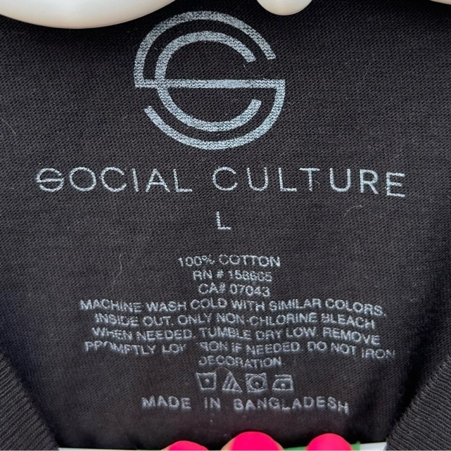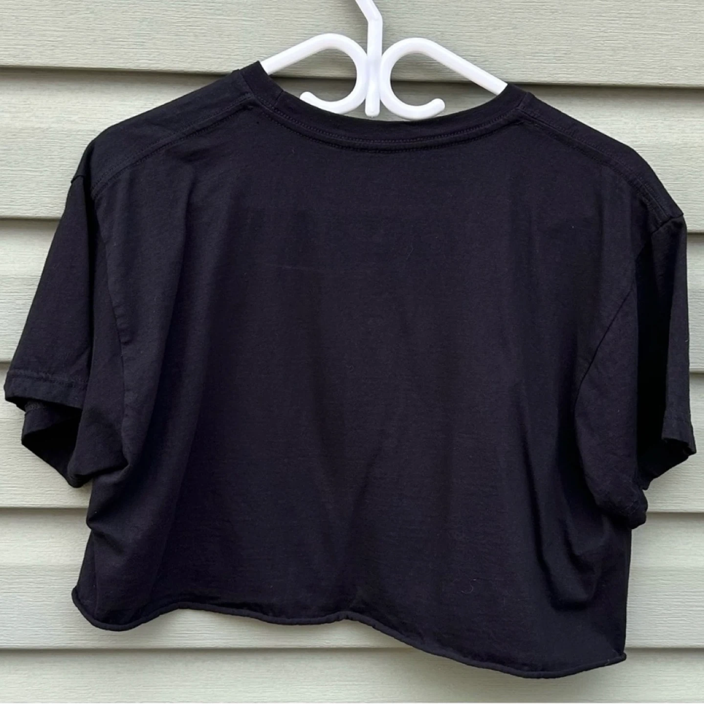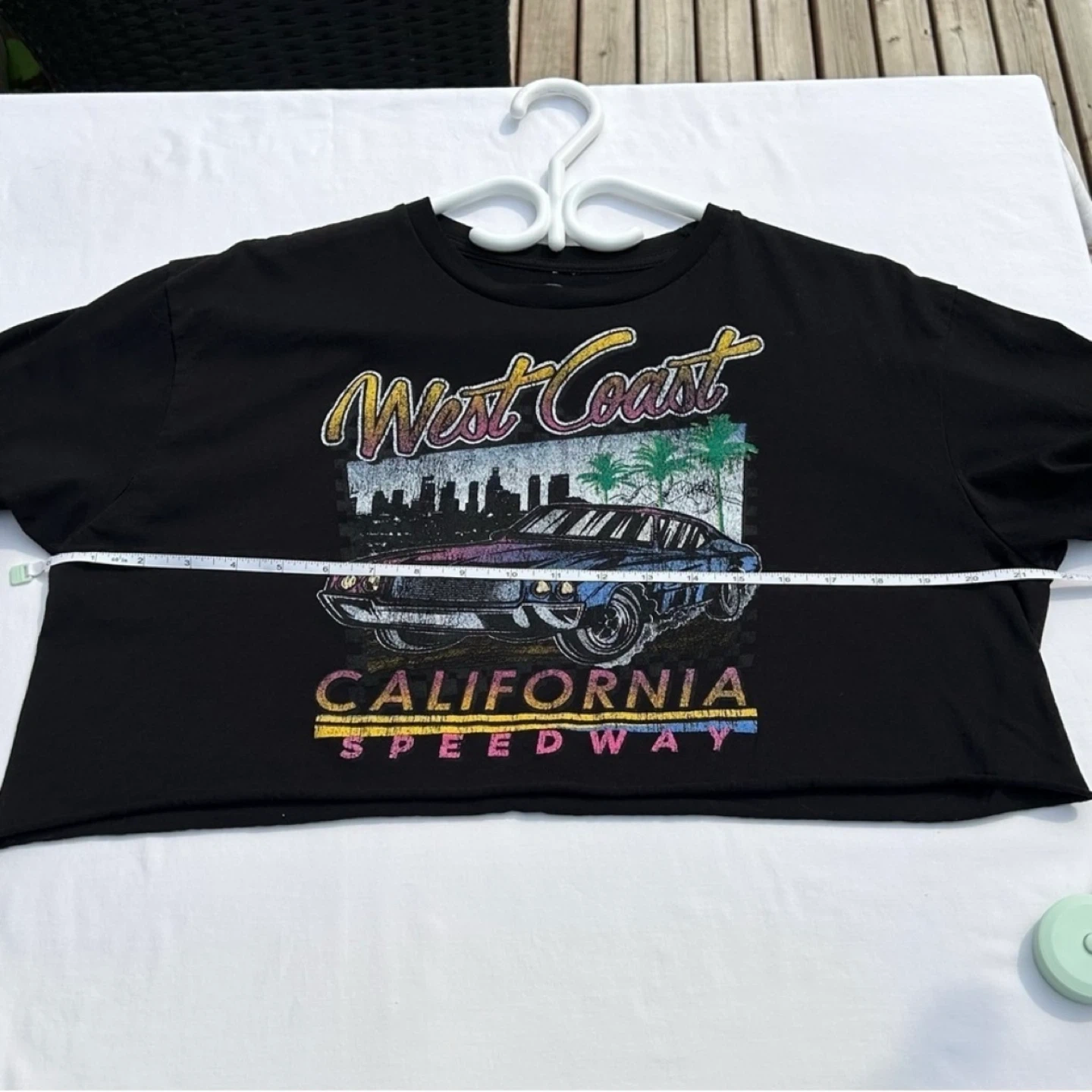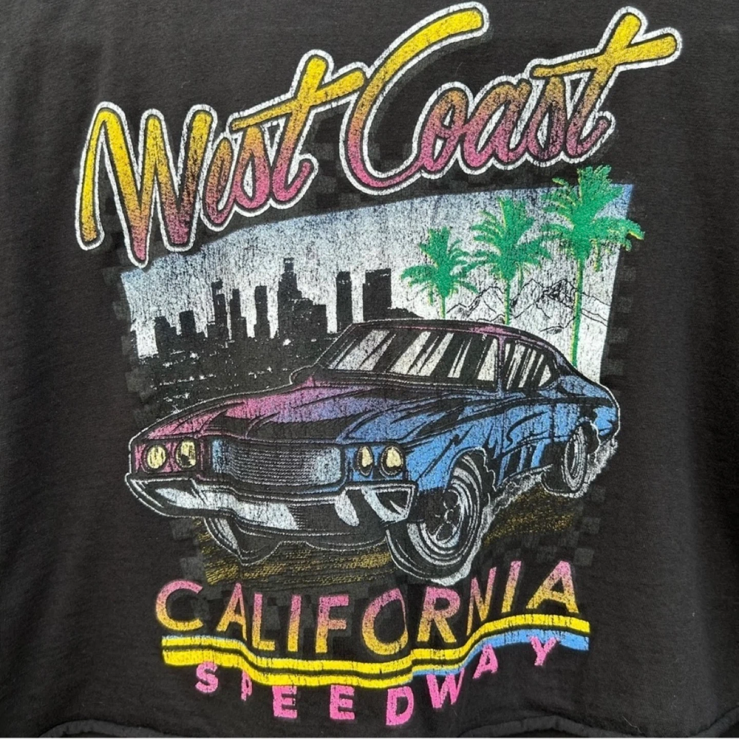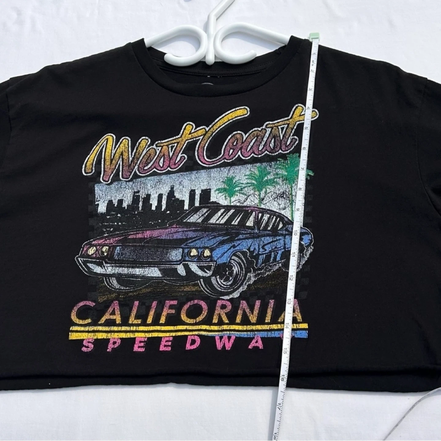 Black cropped t-shirt from Social Culture. West Coast California Speedway printed at chest. Vintage feel - printing at chest is distressed. Oversized and cropped. Women’s size L. See photos for measurements. Cross posted.