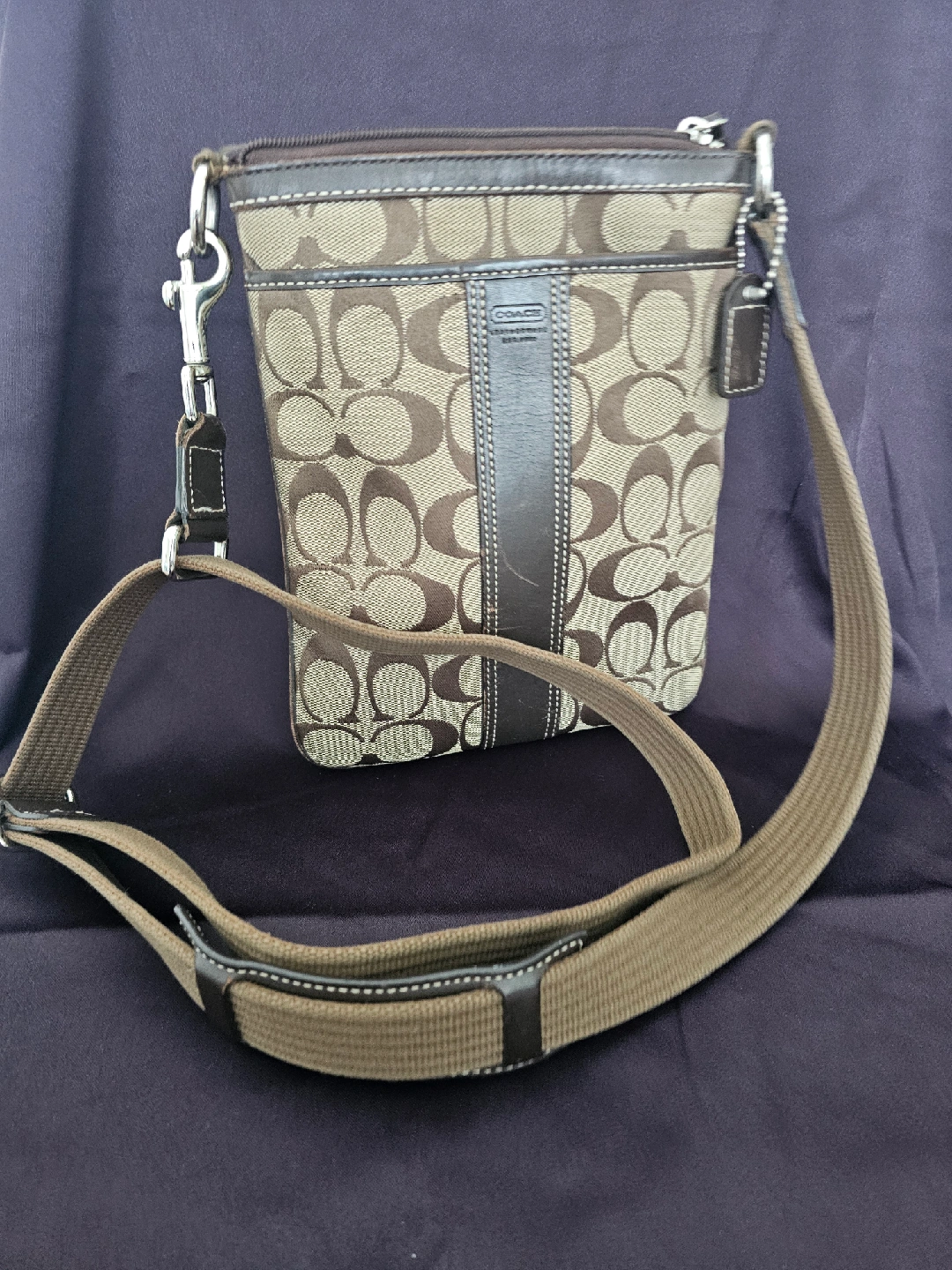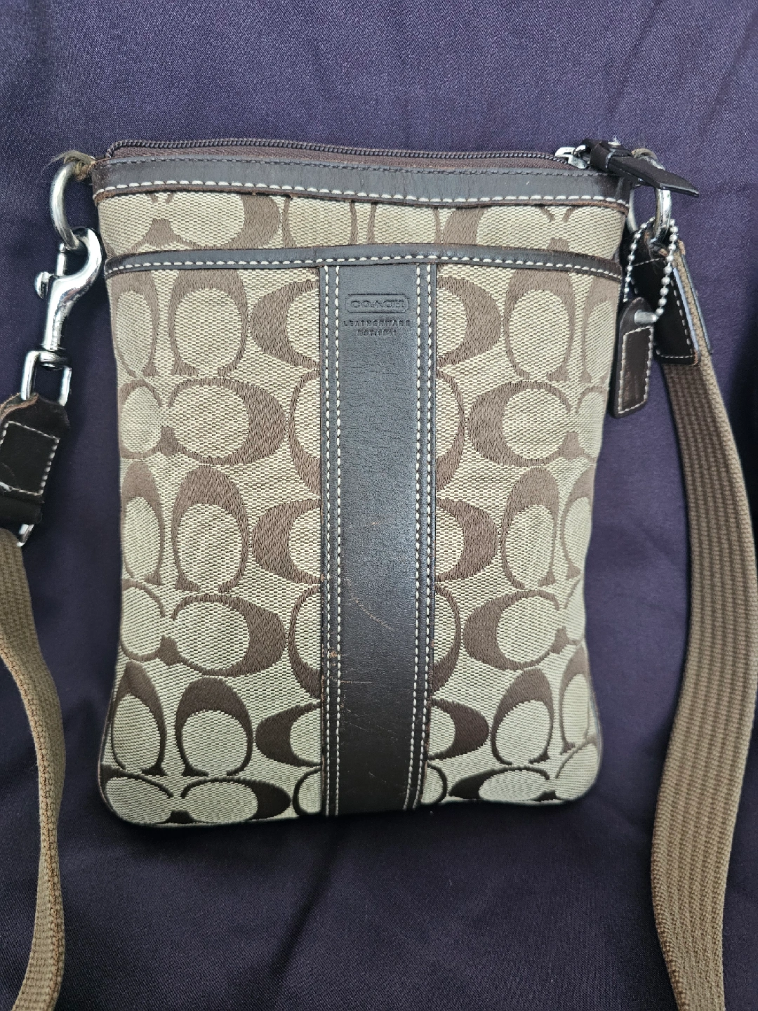 10Selling a used Coach crossbody bag! It's in great condition and perfect for carrying your essentials. The bag features the classic Coach pattern and a convenient adjustable strap. $30 Open to offers Pick up only Cash only near WESTON GO/UP train station
