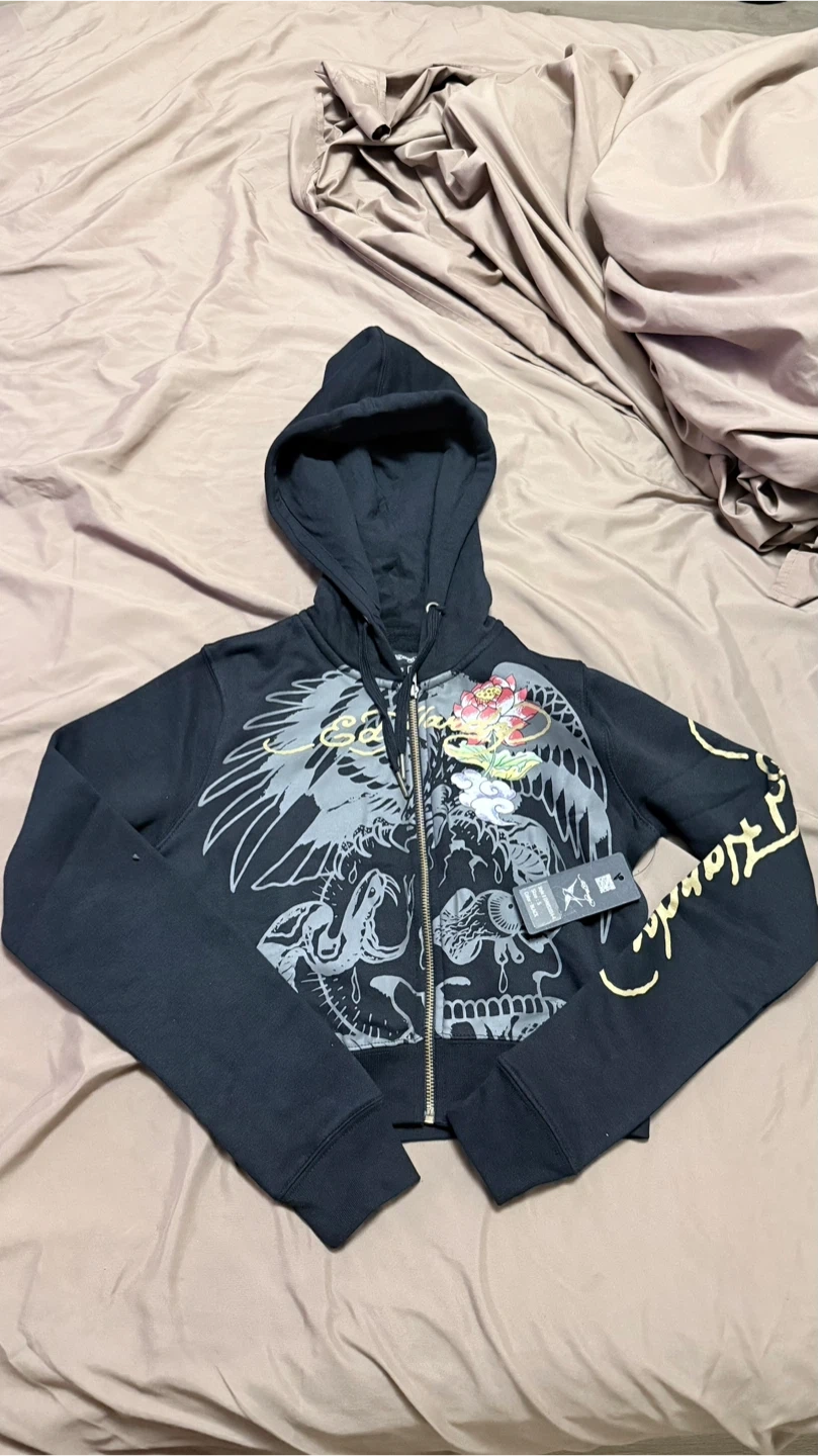 65Ed Hardy matching set! The hoodie and sweatpants are both size small and feature unique graphic designs. The set is black and in great condition, ready for a new home! Bought for over $170 with taxes and shipping