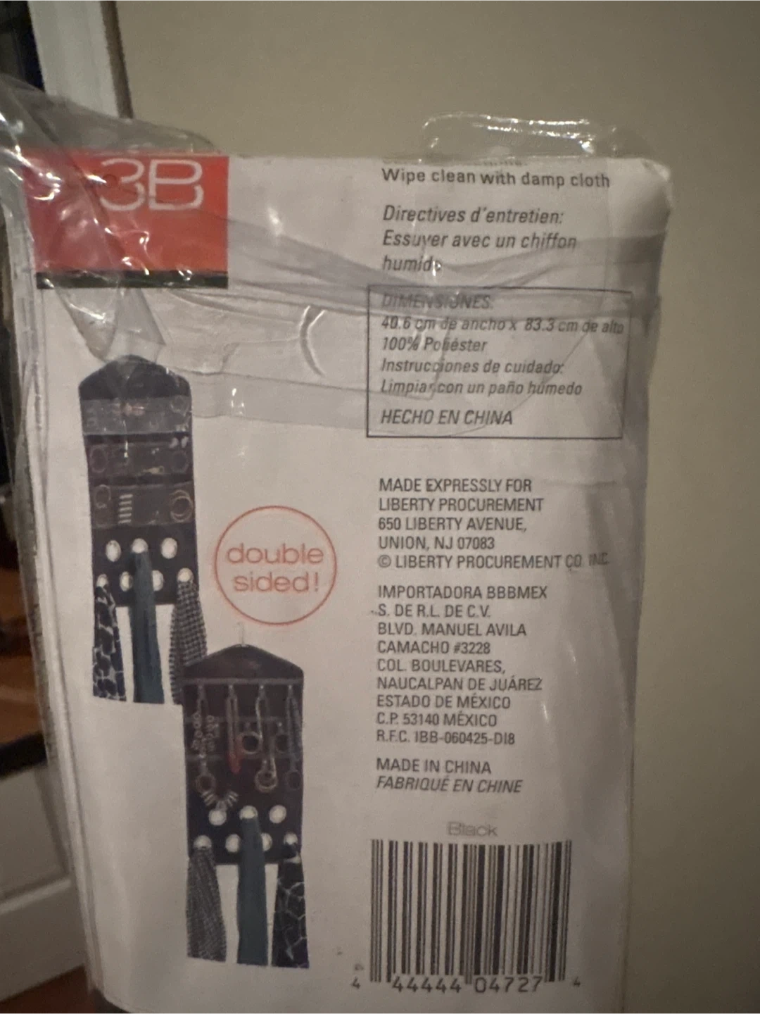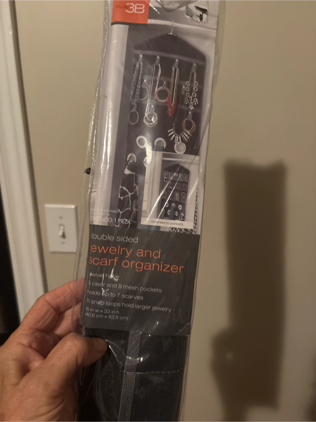 NEW 3B Double Sided Jewelry and Scarf Organizer! It features a swivel hook, 9 clear and 8 mesh pockets, and holds up to 7 scarves. There are also 11 snap loops to hold larger jewelry. The organizer is double sided and measures 15 in (38 cm) wide x 33 in (83.8 cm) high…. pick up on Chandos Drive in Chicopee area of South Kitchener and 284H8.