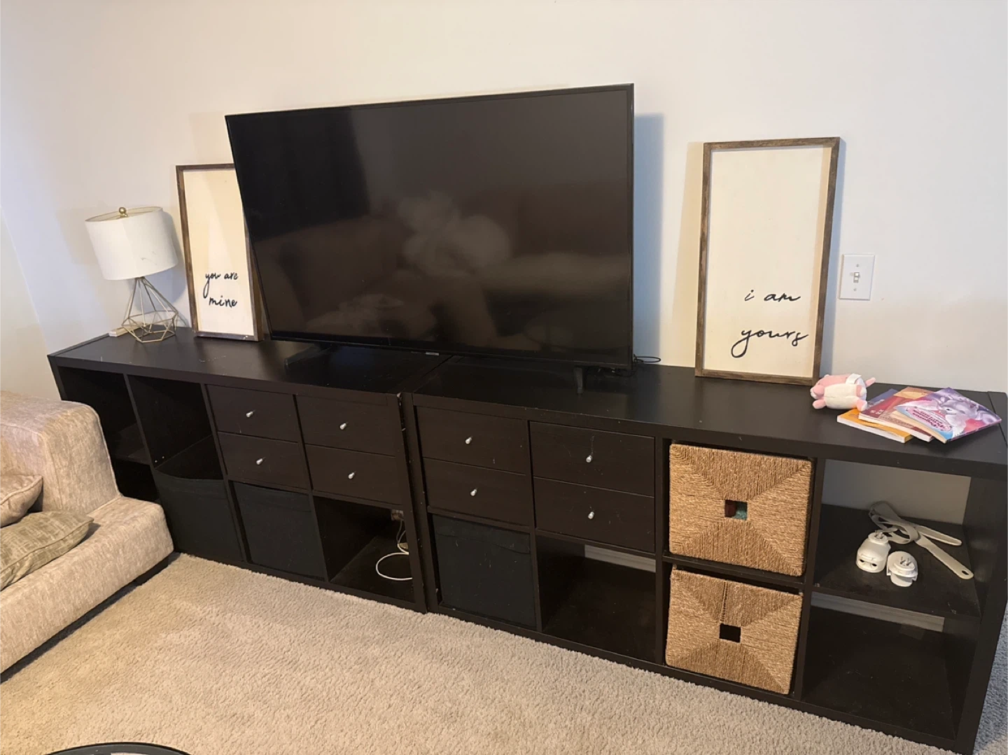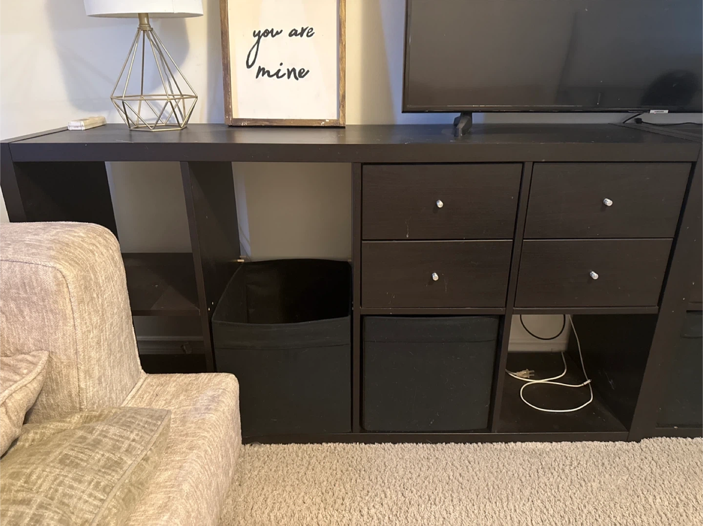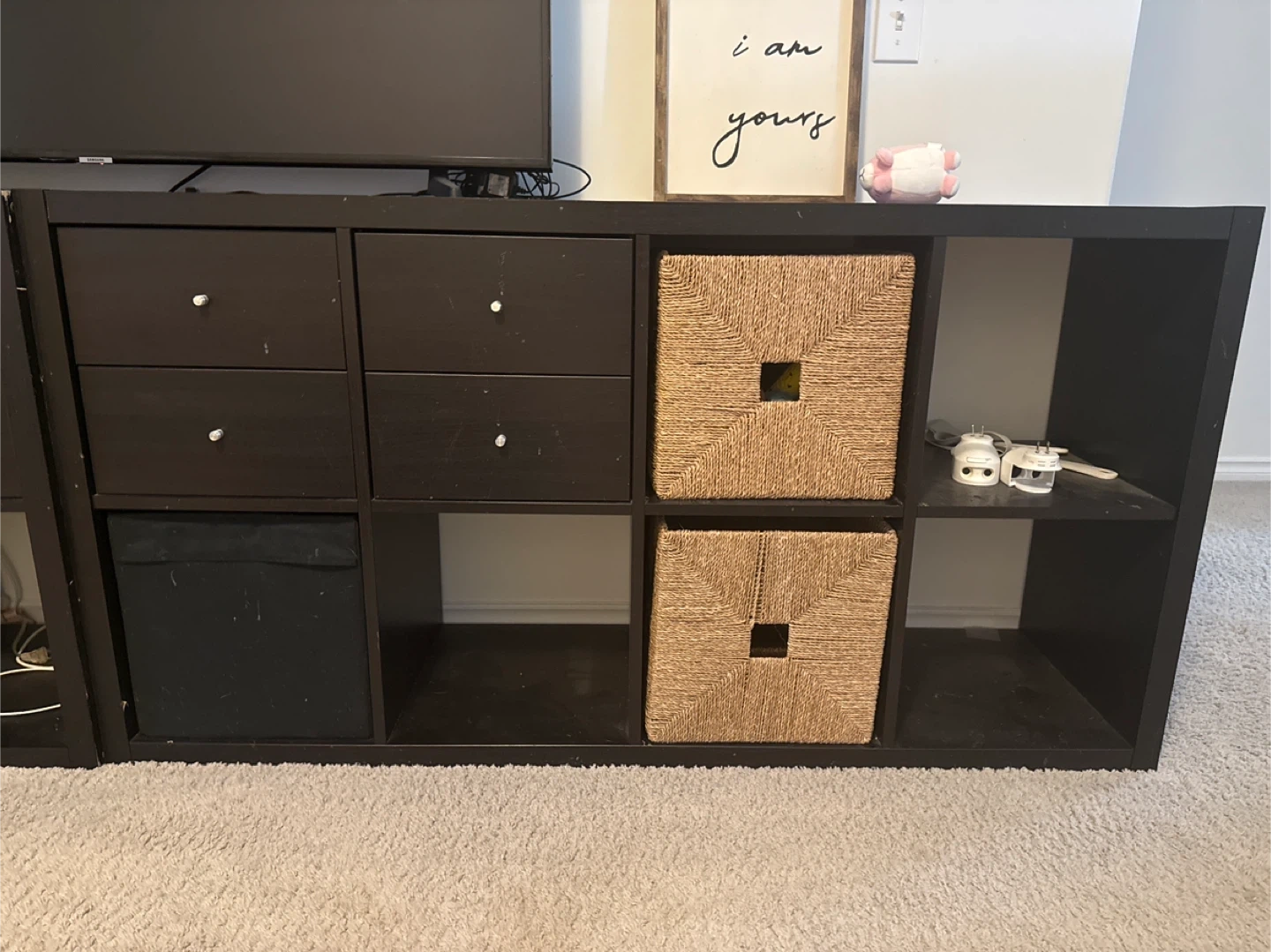 Selling 2 IKEA Kallax shelf units in black-brown! They are in good condition and ready to organize your space.