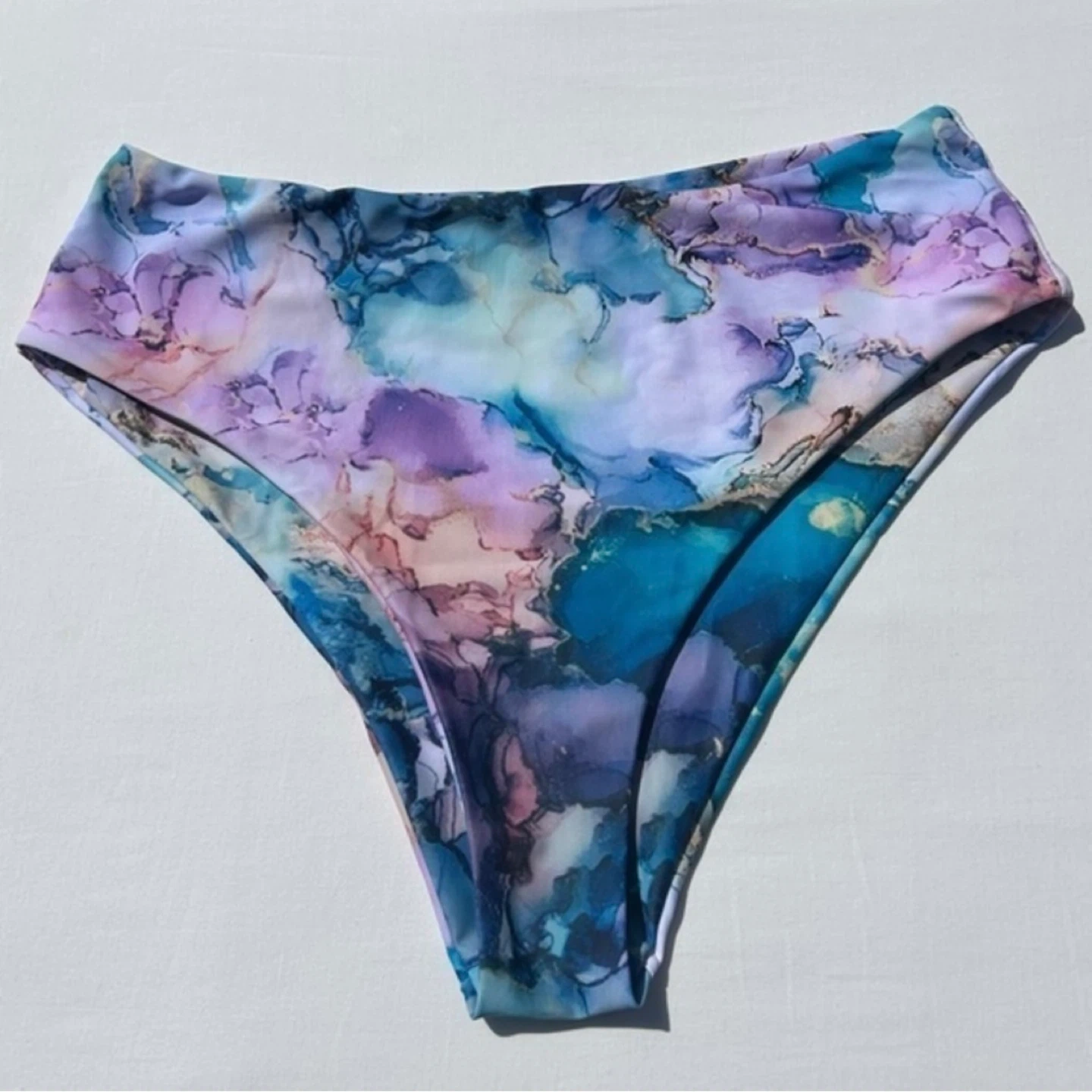Shein Watercolor Marble High Waisted Bikini Bottoms Size XL
