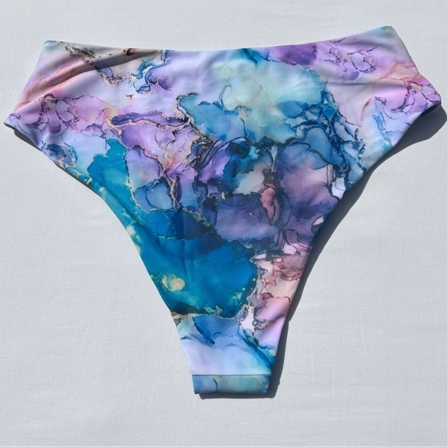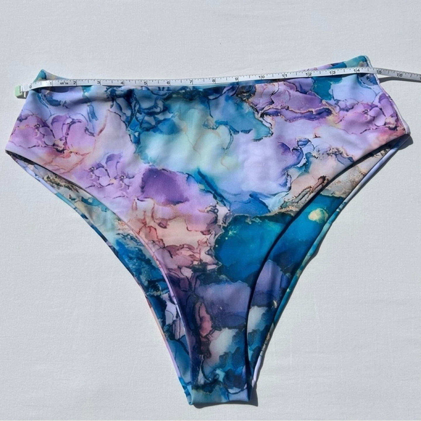 Pink, purple, blue & turquoise marble watercolour high waisted bikini bottoms from Shein. Worn only once. Women’s size XL. See photos for measurements. Cross posted.