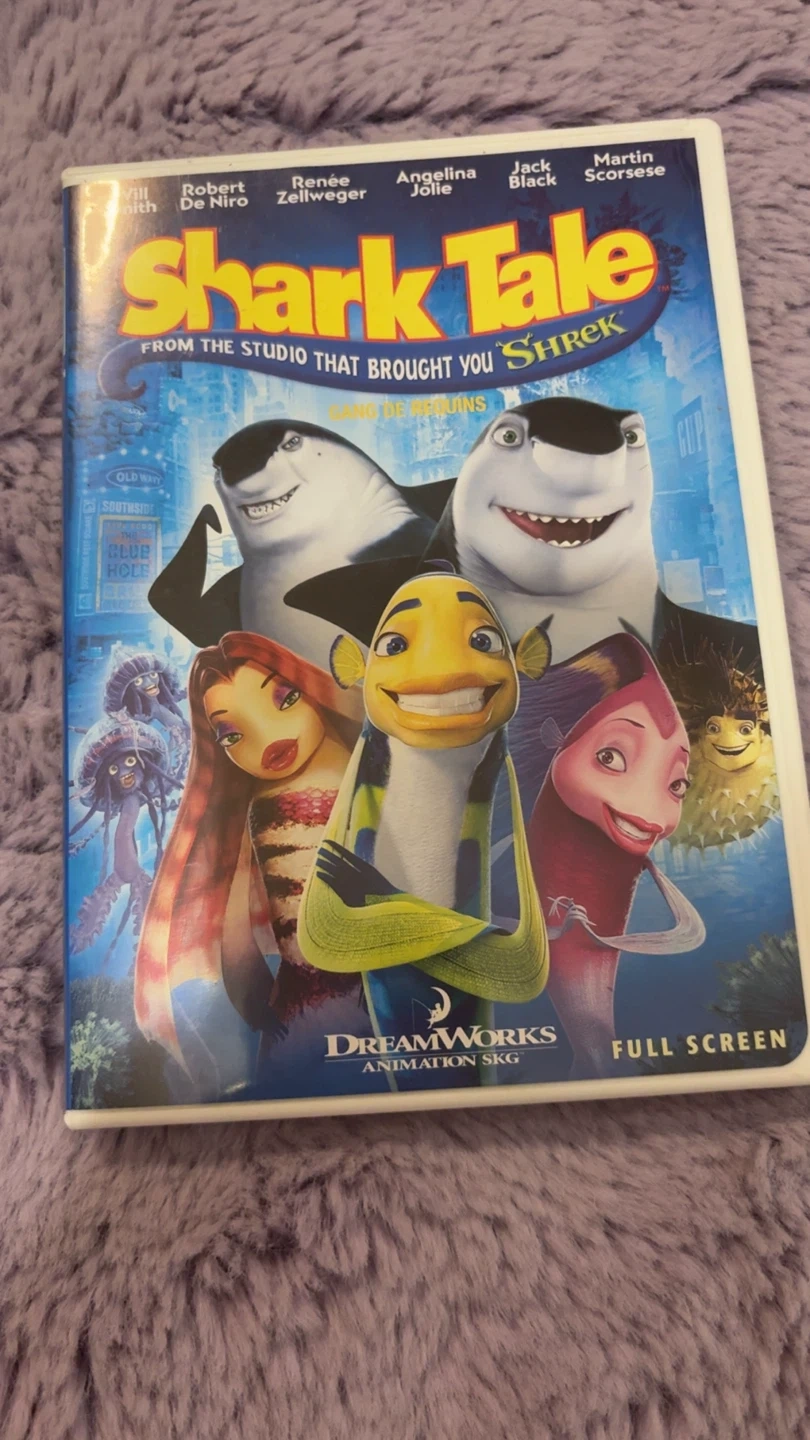 Selling a DVD of Shark Tale. It's the full screen edition, from Dreamworks, the studio that brought you Shrek! Features the voices of Will Smith, Robert De Niro, Renée Zellweger, Angelina Jolie, Jack Black, and Martin Scorsese