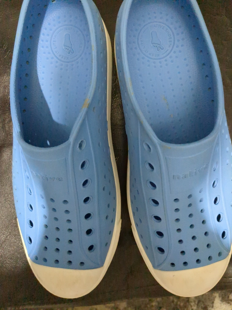 Selling a pair of light blue Native shoes in size 5 They're in good condition and perfect for wear during the warmer months. They're lightweight and easy to clean too!