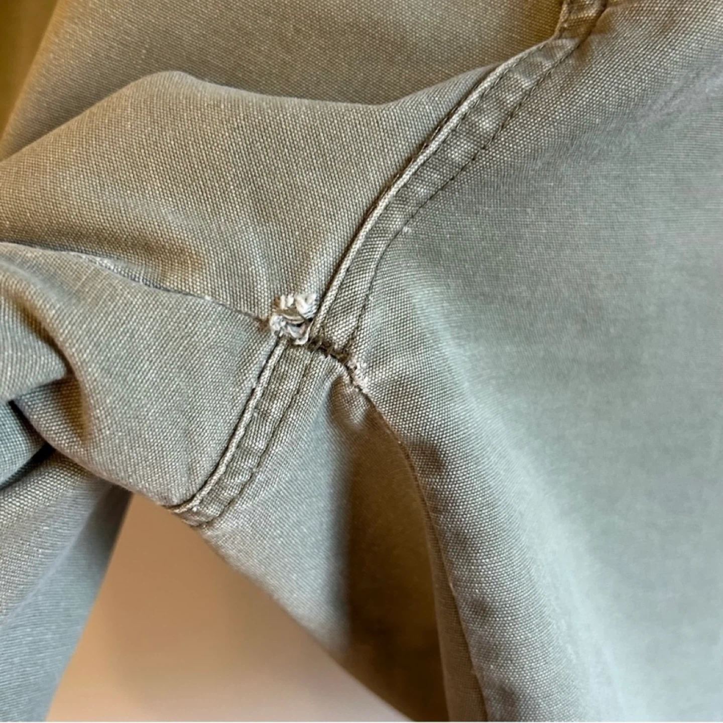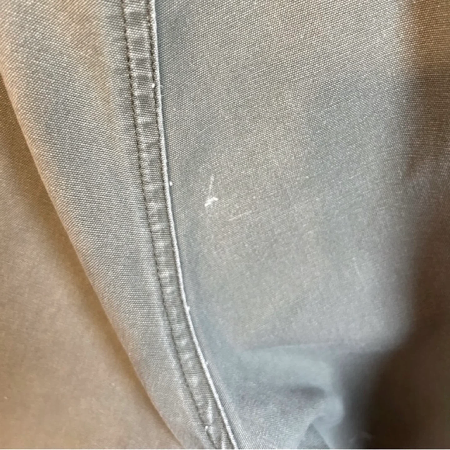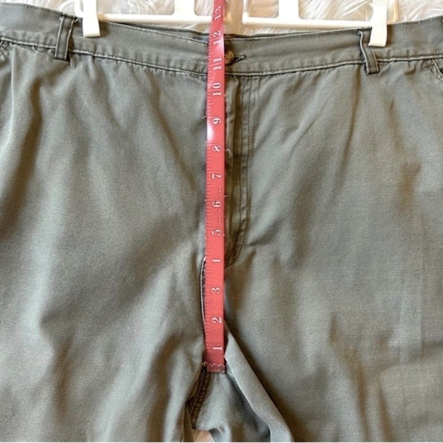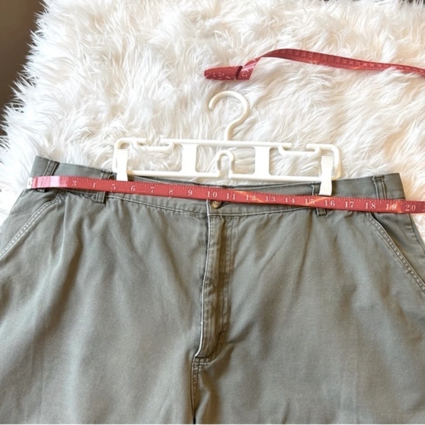 Olive green flat front canvas shorts from J&L. A few small flaws (see photos) but overall in good condition. Slash front pockets and rear flap pockets. Button & zip fly. Men’s waist size 40. Cross posted.