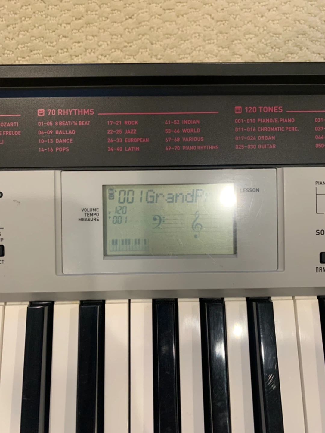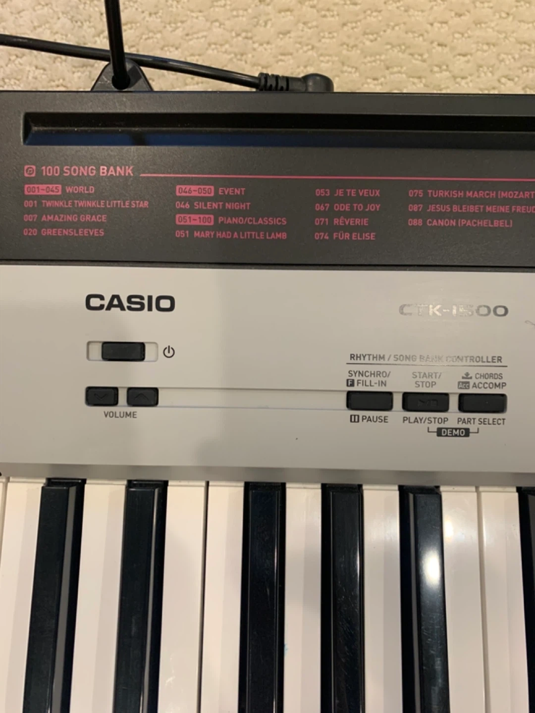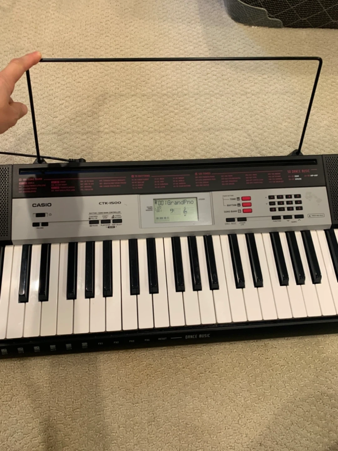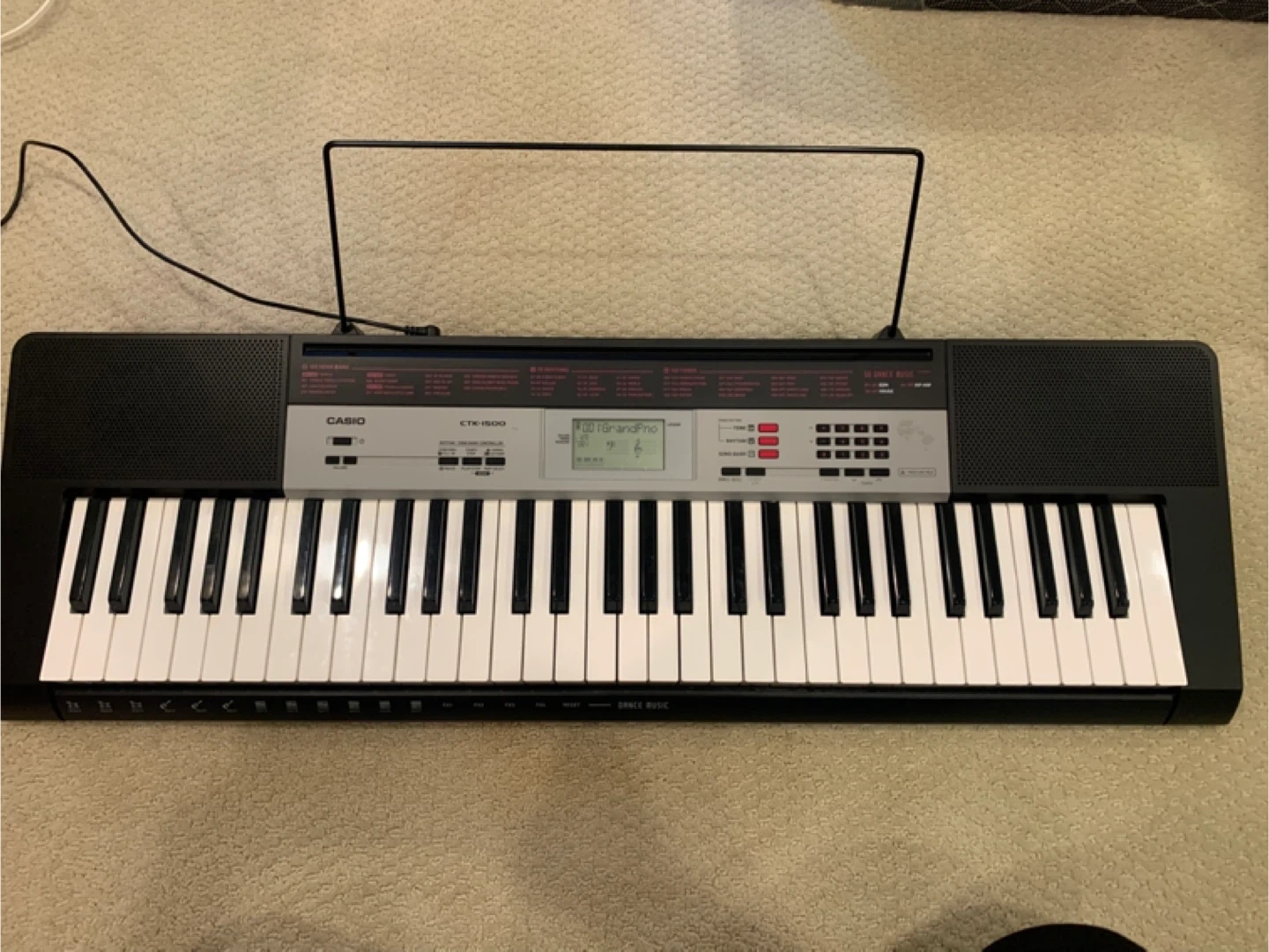 Selling a Casio CTK-1500 keyboard. It features a 100 Song Bank and 50 Dance Music rhythms. It also has 120 tones and 70 rhythms. Great for beginners!