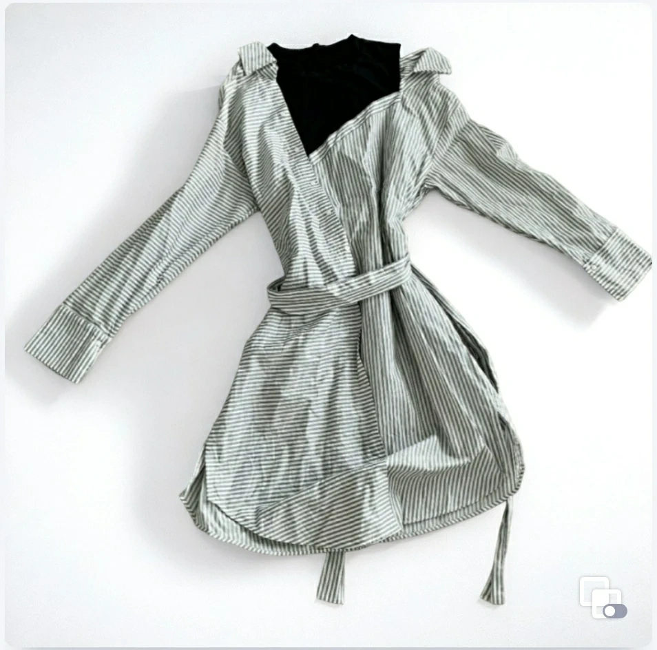 Stain at back as shown, needs a tide to go pen. first 2 pics are of a different colourway, shows how the model fits.