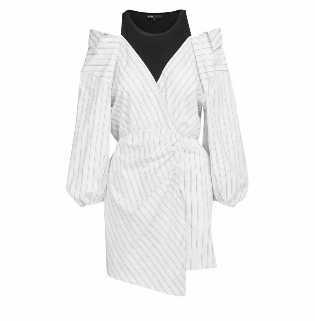 Maje Asymmetrical Striped Cold Shoulder Dress
