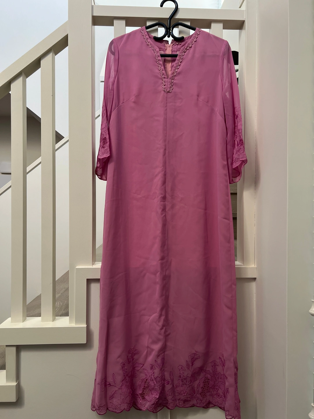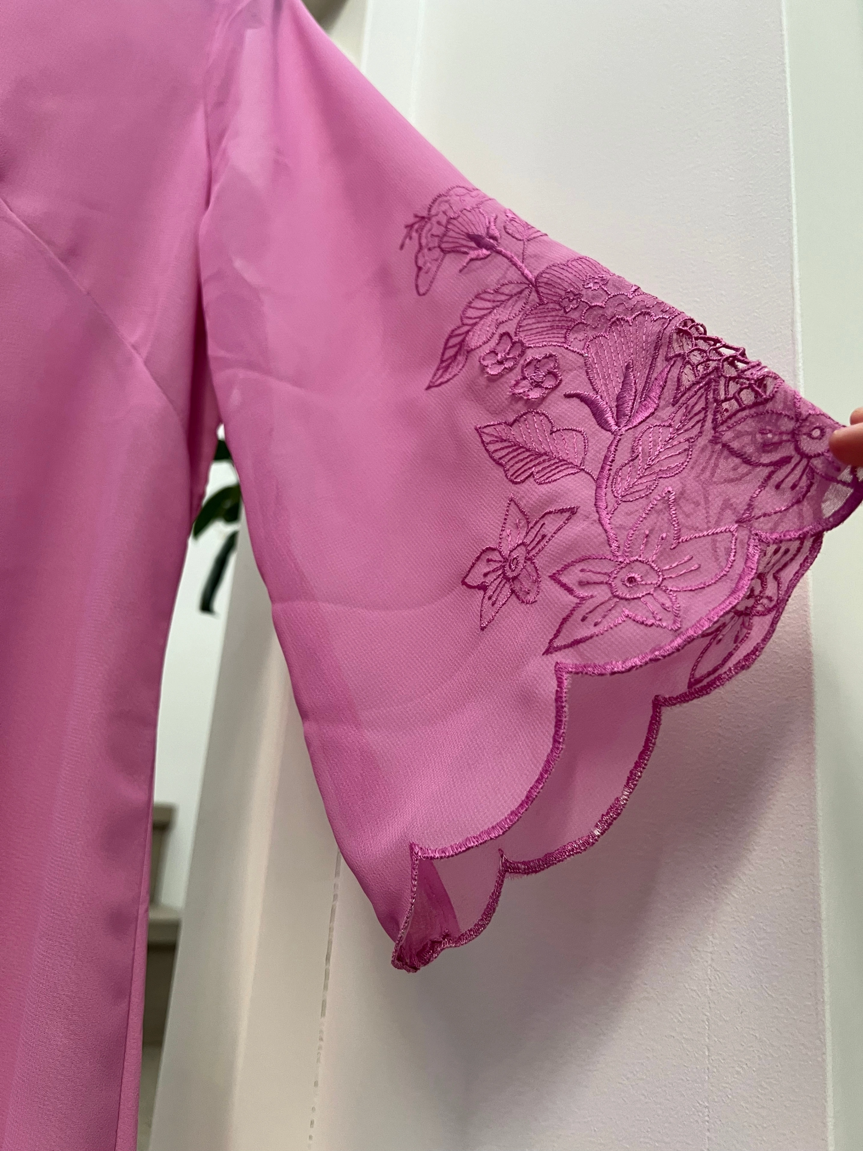 39Groovy Kaftan Vintage MCM 1960s Embroidered Rose Dress Flat lay measurements: Shoulder to shoulder: 15.5" Armpit to armpit (bust): 20" Waist: 17.5" Top of shoulder to bottom of dress: 52" Top of sleeve to bottom of sleeve: 19" Excellent vintage condition, some small areas of discoloration Pick up in Vancouver boho chic hippie style anthropologie free people 60s 70s