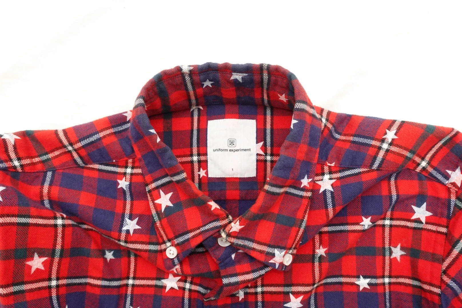 39Rare 09AW Uniform Experiment Star Flannel Plaid Shirt in red. Size 1. Designed by Hiroshi Fujiwara, with subtle Fragment logo throughout. Paid $200+ new, Made in Japan. Measurements Chest: 21" Length: 27" Shoulder: 17" Sleeve: 24" Pick up in Vancouver Beams Undercover Comme des Garcons Visvim Kapital Kaptain Sunshine The Real McCoys Buzz Ricksons Needles Fragment Auralee orSlow 45rpm A.PRESSE Junya Watanabe CDG Sacai and Wander Snow Peak Human Made Nigo Bape Stussy Supreme Kith Noah Carhartt Brain Dead Palace Aime Leon Dore Y-3 Yohji Yamamoto Issey Miyake Suicoke Engineered Garments Nanamica Cav Empt Wtaps Neighborhood Norse Projects Our Legacy Stone Island JJJound Wings+Horns Reigning Champ Peak Performance Patagonia The North Face Veilance Arcteryx Salomon