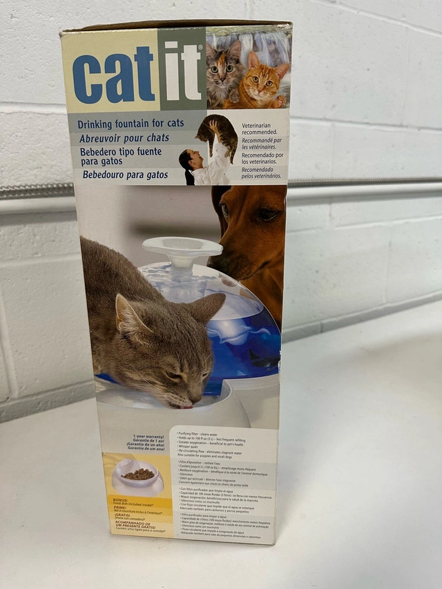 27I'm offering a brand new Catit Drinking Fountain for Cats with a filter, ensuring your feline friend always has access to fresh, clean water. This fountain is designed to encourage your cat to drink more, promoting better hydration and urinary health. The fountain includes a filter to remove impurities and odors, providing the best quality water for your pet. Features: * Encourages increased water intake * Includes filter for clean water * Easy to clean and maintain Your cat will think you're the cat's meow for getting them this amazing water fountain! If you're seeing this ad, rest assured, it's still available! Payment: Cashless payment, Cash accepted