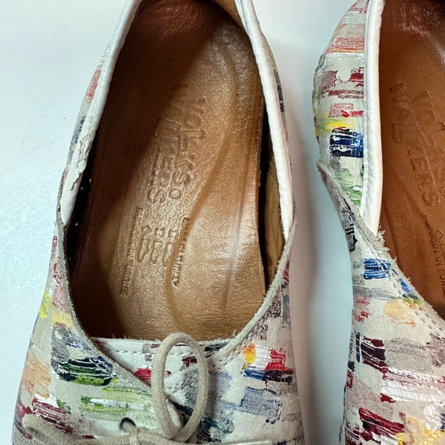 Comfort meets style with these Wolkyso Walkers women’s lace-up flats. Featuring a vibrant multicolor abstract leather upper, cushioned insole, and flexible slip-resistant sole, these shoes are perfect for all-day wear. Ideal for walking, travel, or casual