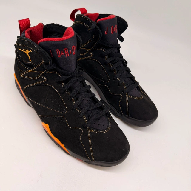 Nike Air Jordan 7 Retro (Style CU9307-081) men’s basketball sneakers. Size: US 12 / UK 11 / EU 46. Premium suede upper with gold stitching and embroidered Jumpman. Red inner lining & pull tab, multicolor outsole design. Condition: Gently used, very clean (see photos) ✅ 100% Authentic. Pickup in North York.