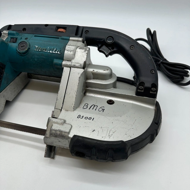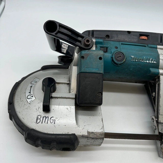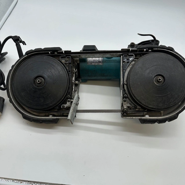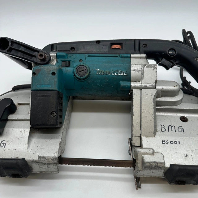 I'm selling a powerful metal-cutting portable band saw by Makita, model 2107F. This tool is designed for efficiently cutting through various metal materials with precision. As you can see from the pictures, it is in used condition and has the previous owners name engraved in the tool. Features: * Portable design for easy transport and use in different locations * High cutting speed for increased efficiency * Adjustable blade tension for accurate cuts * Durable construction for long-lasting performance This band saw is a reliable choice for any metalworking project. If the ad is up, it's available!