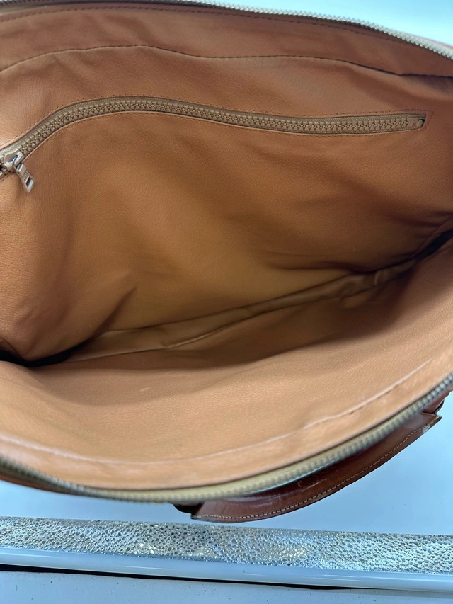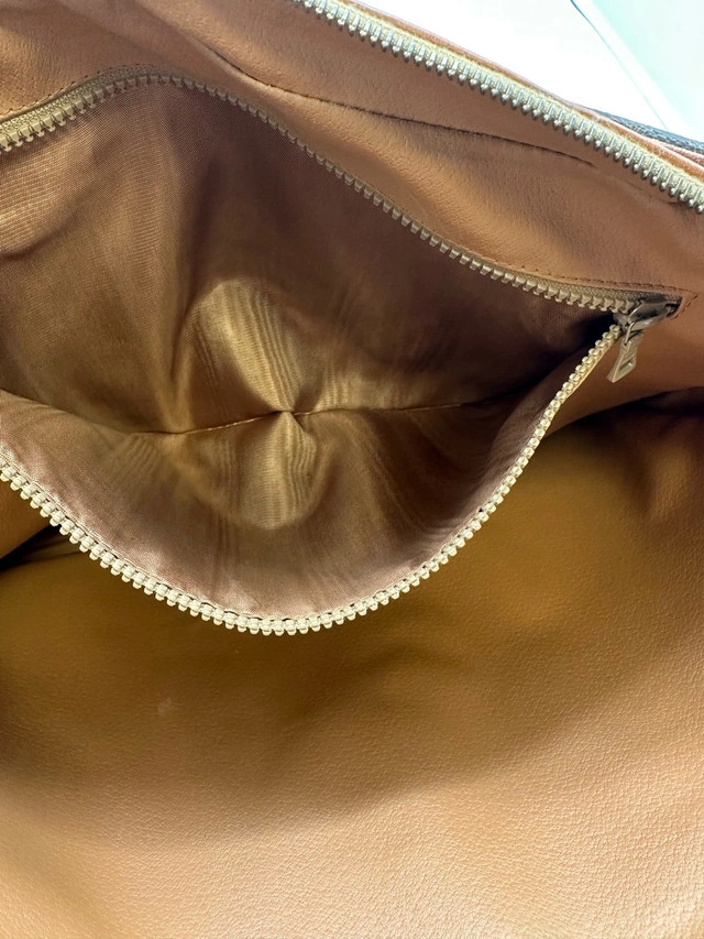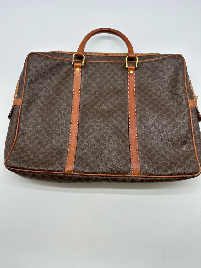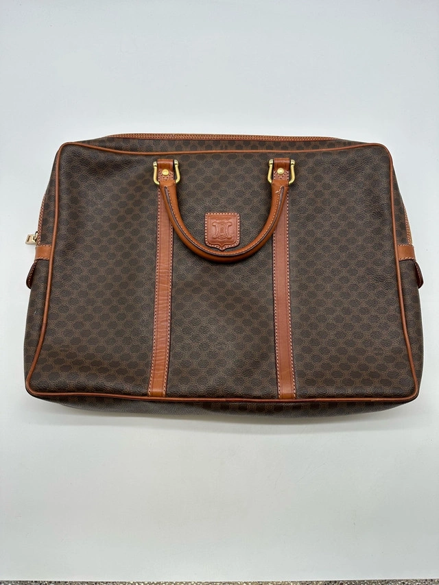 This authentic Céline vintage briefcase is crafted from high-quality brown leather, featuring the iconic macadam pattern. This stylish and functional bag is perfect for professionals and collectors alike. The exterior shows some signs of wear, which adds to its vintage charm. Key features include: * Durable leather construction * Classic Céline macadam pattern * Spacious interior with a zippered pocket * Secure zipper closure * Sturdy top handles Looking at similar Céline briefcases on Kijiji, a fair price for this vintage piece is around $450. Given its good condition, I've priced it competitively. If the ad is up, the briefcase is available! Don't miss out on owning a piece of Céline history! 1068b3