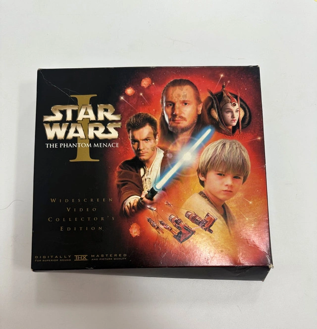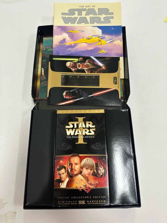 Relive the epic adventure with the Star Wars Episode I: The Phantom Menace VHS Widescreen Collector's Edition! This collector's edition comes with the VHS tape, a booklet, and film cells. Please note that the item is in used condition, adding to its vintage charm. I'm pricing this at $35. If the ad is up, then it's still available!