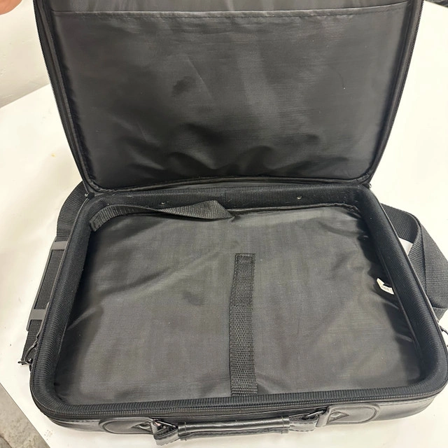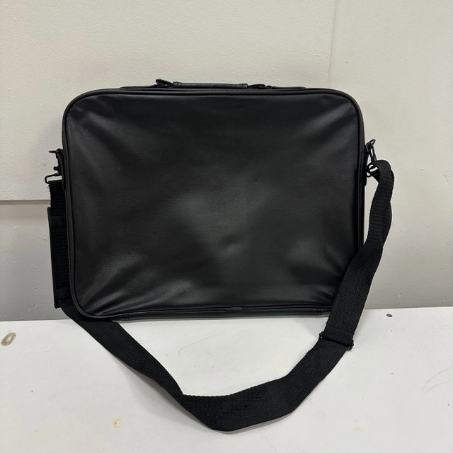 This is a used black leather laptop/briefcase bag, perfect for professionals on the go. It includes a shoulder strap for easy carrying. While it has been used, it remains in good condition and has plenty of life left. * Material: Leather * Colour: Black * Includes: Adjustable shoulder strap