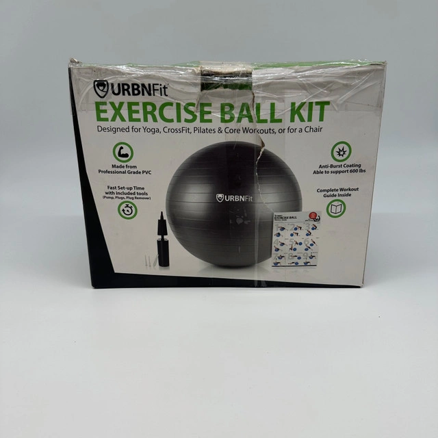 Get ready to amp up your fitness routine with this new URBNFit Exercise Ball Kit, designed for yoga, Pilates, and more! This kit includes everything you need to get started on your journey to a stronger core and better posture. The ball is crafted from professional-grade PVC with an anti-burst coating, capable of supporting up to 600 lbs. Plus, it sets up quickly with the included tools and workout guide. Additional features include: * Designed for yoga, CrossFit, Pilates & core workouts, or for a chair * Made from professional grade PVC * Fast set-up time with included tools * Anti-burst coating * Able to support 600 lbs * Complete workout guide included inside Bring some bounce to your workout routine, and remember, if the ad is up, it's still available! No need to ask, just get ready to grab this fantastic fitness tool.