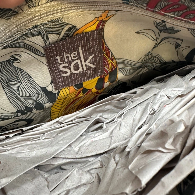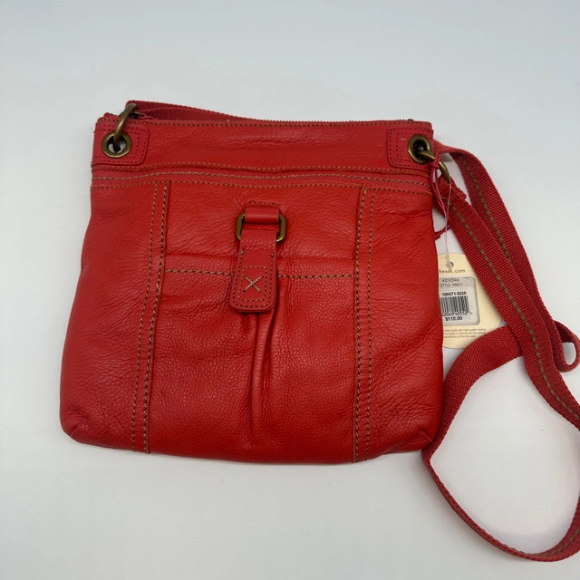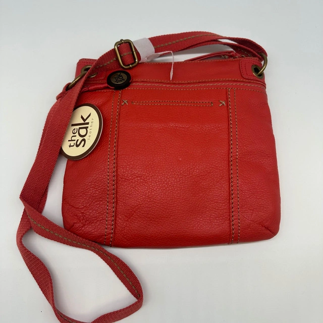 27Stylish and functional The Sak crossbody bag in vibrant red genuine leather. Features brass-tone hardware, adjustable fabric strap, front buckle accent, and back zip pocket. Compact size (approx. 10” width) makes it perfect for daily use while keeping your essentials organized. Condition: Brand new with tags, never used. Please note there is some peeling/flaking on part of the strap leather (see photos). Original price tag: $110 Great everyday bag with a pop of color! Pickup in North York