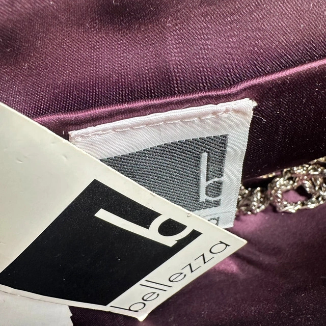 This brand new Bellezza purple clutch is the perfect accessory for a night out, featuring a sleek design and a convenient chain for easy carrying. The rich purple satin finish adds a touch of elegance to any outfit. Features: * Brand: Bellezza * Colour: Purple * Material: Satin * Includes: Detachable chain strap Add a pop of colour and sophistication to your wardrobe with this stylish clutch! Just a heads-up, if you're seeing this ad, the clutch is still waiting to be whisked away to its new home!
