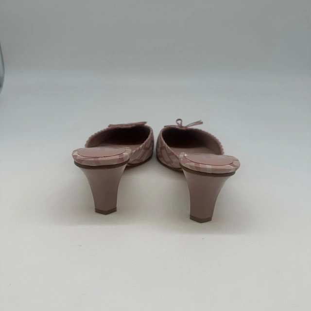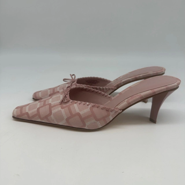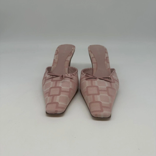 Elevate your style with these Nine West women's pink patterned slip-on mules heels, perfect for adding a touch of sophistication to any outfit. These chic heels feature a unique pink pattern, a comfortable slip-on design, and are in good condition. Although they've been previously loved, they still have plenty of life left and are ready to turn heads! Additional details: - Brand: Nine West - Style: Mules - Colour: Pink - Pattern: Geometric - Type: Heel - Closure: Slip-On If the ad is up, the heels are ready to step out!