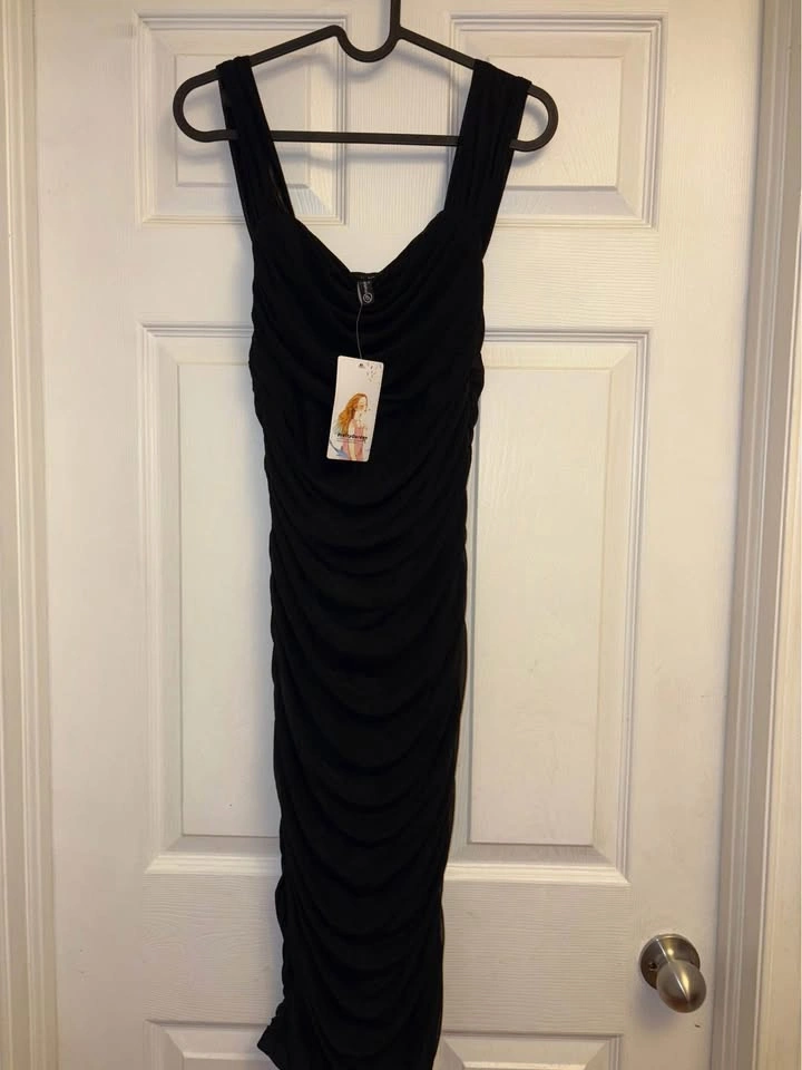 New PRETTYGARDEN Mini Ruched Bodycon Off Shoulder Sleeveless Dress, Size: M